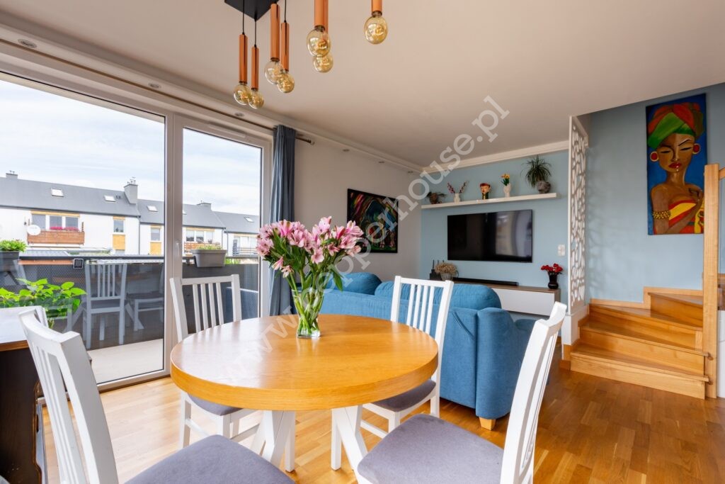 Wyjątkowy, przestronny dwupoziomowy 4- plex o łącznej powierzchni po podłodze 113m2 (81 m2 w księdze wieczystej) z 2017 roku na Osiedlu Harmony w Dębogórze.