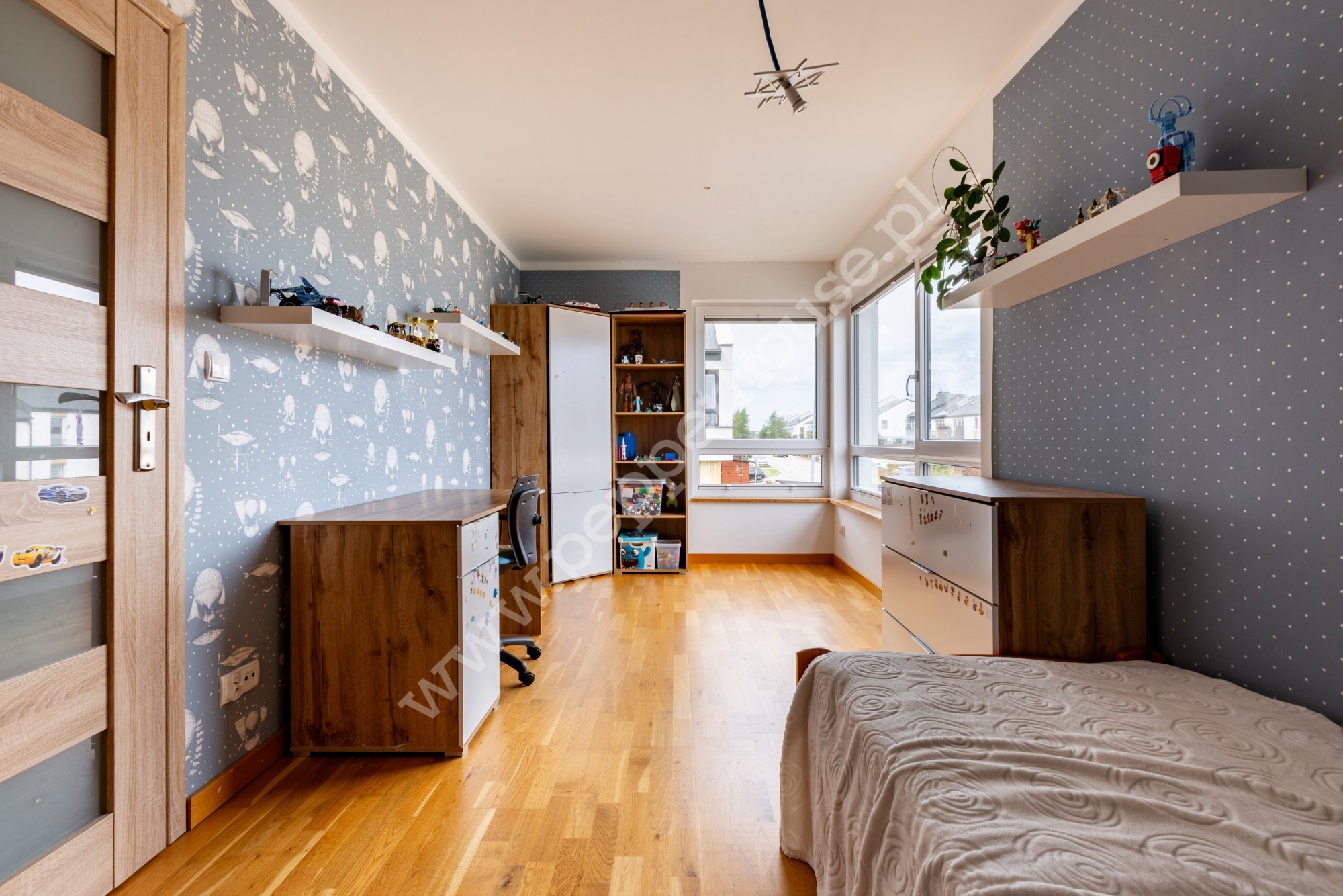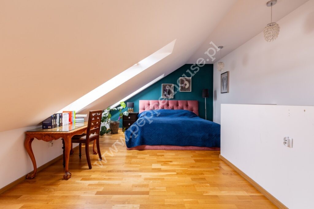 pokój ok 27m2 – powierzchnia użytkowa zaadaptowana na sypialnie z wydzieloną garderobą.