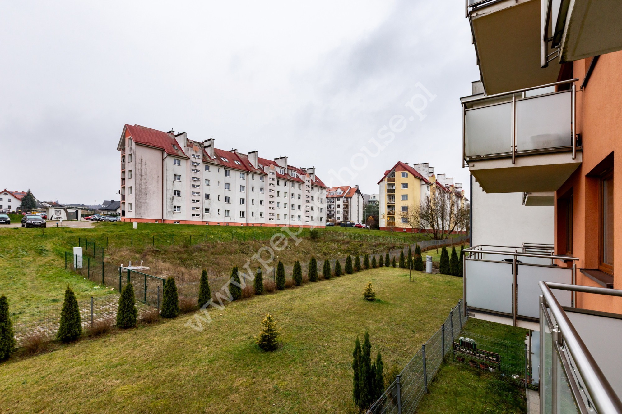 Budynek wyróżnia się estetyczną, spokojną architekturą i otoczony jest nowymi, zadbanymi osiedlami. Z okien mieszkania widać wolną działkę oraz plac zabaw – w komfortowej odległości, tak aby nie zakłócał spokoju, ale tworzył przyjazne otoczenie.