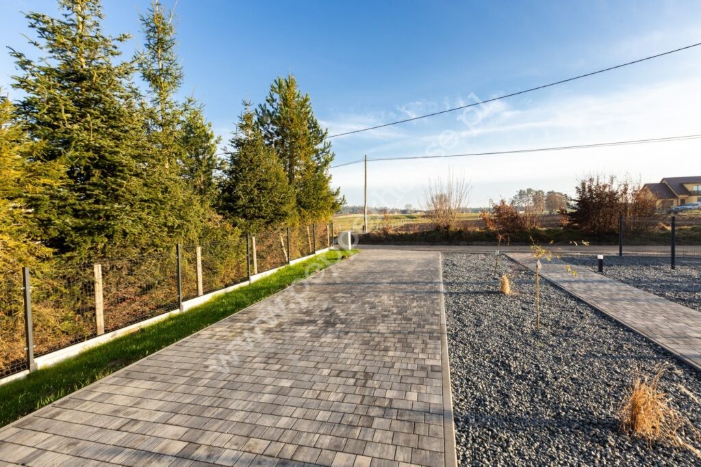 - Chodniki , taras oraz podjazd do wiaty wyłożony kostką brukową,