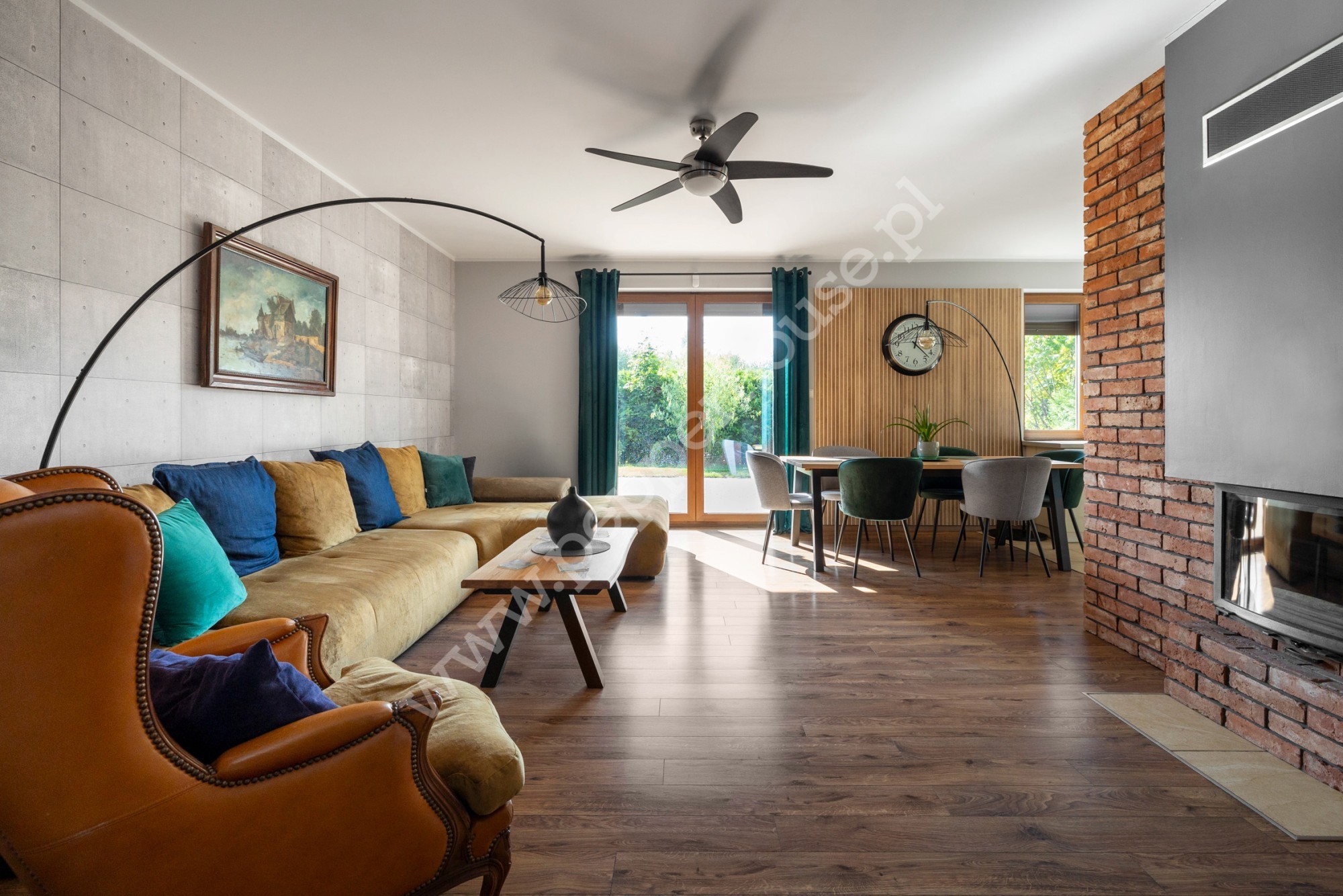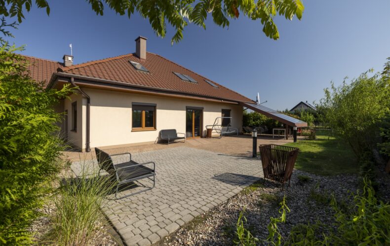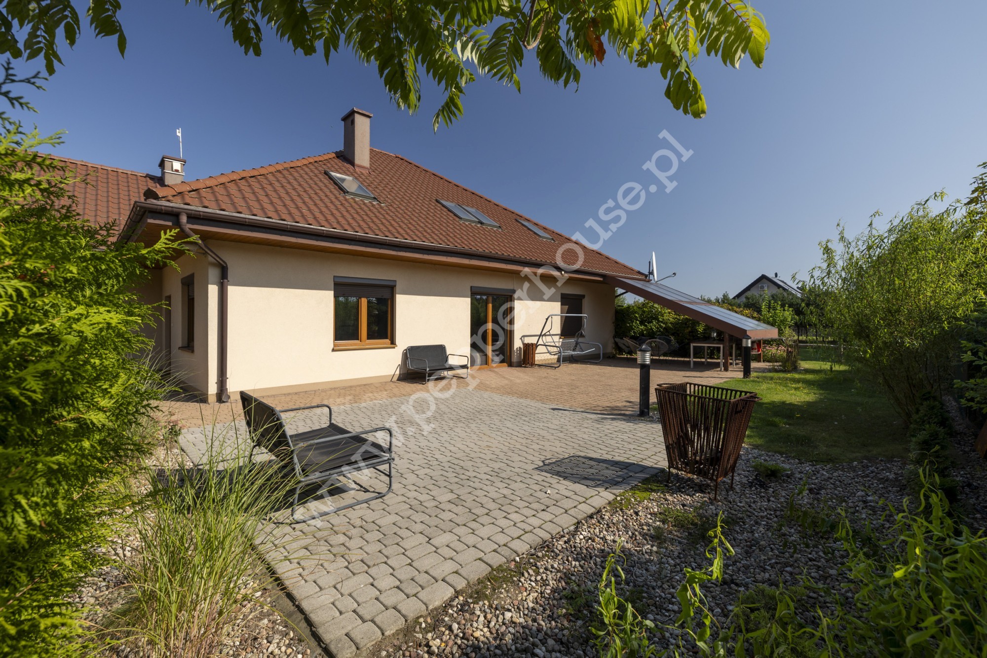 Niewątpliwym atutem nieruchomości jest działka o powierzchni 2300m2, na której został wydzielony urządzony ogród wraz z miejscem na ognisko. Nieruchomość wyposażona jest w kolektory słoneczne, które wspomagają system ogrzewania oraz ogrzewania wody. Część nieruchomości zostało wyposażone w ogrzewanie podłogowe oraz kaloryfery, które zapewnia komfortowe warunki cieplne w całym domu.
