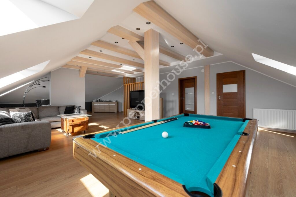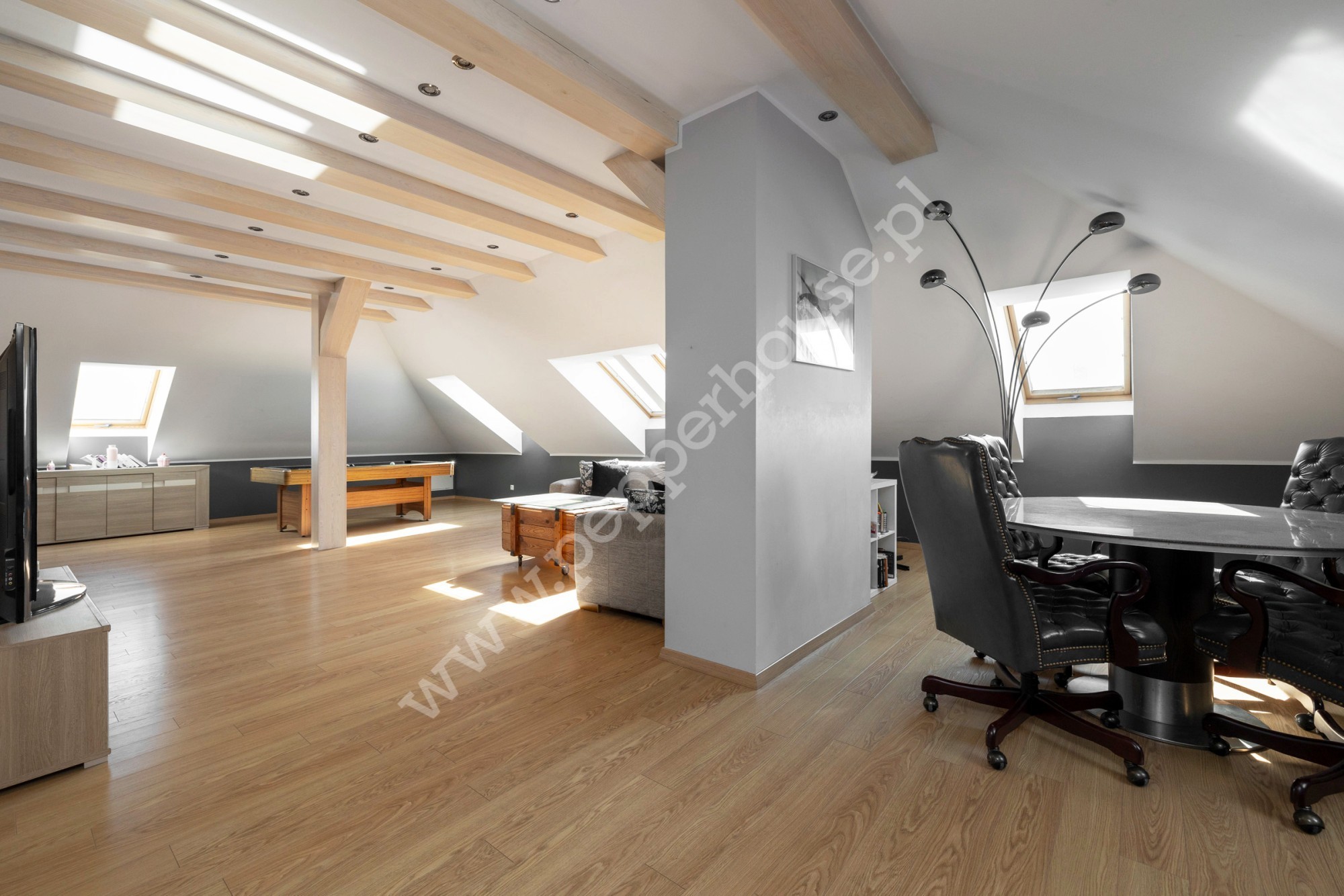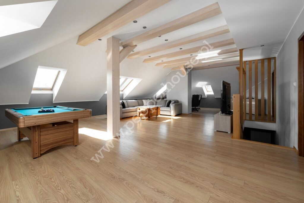Na poddaszu znajduje się przestronny salon, który będzie idealnym miejscem na rodzinne spotkania oraz dwie niezależne, przestronne sypialnie.