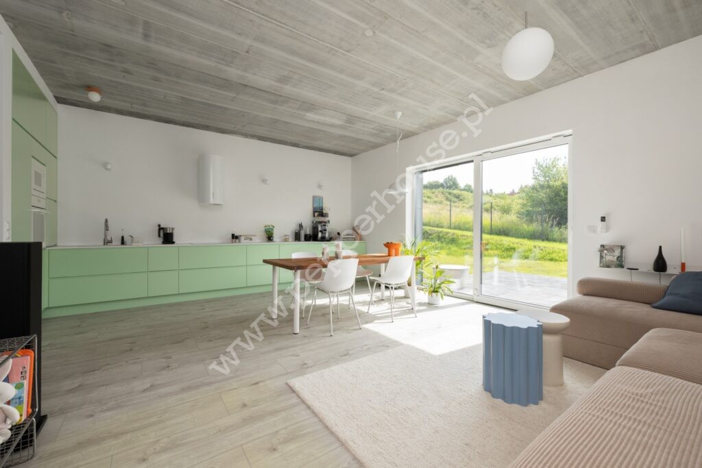 – pokój dzienny z aneksem kuchennym 34m²,