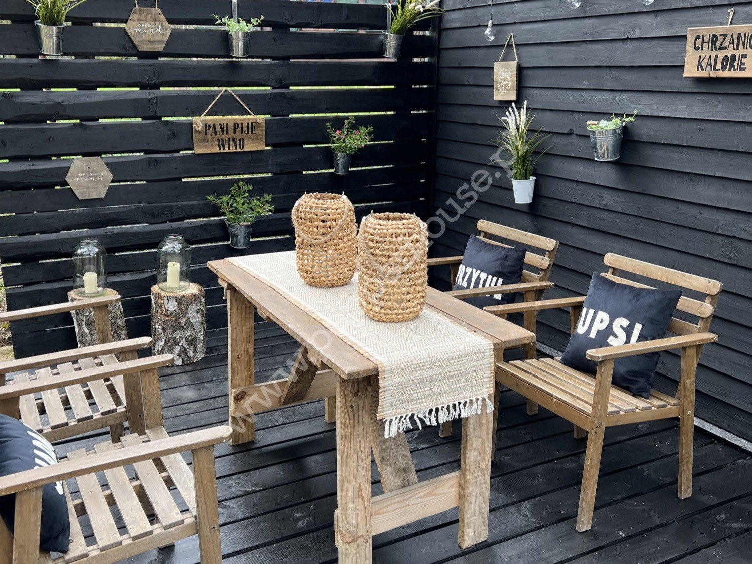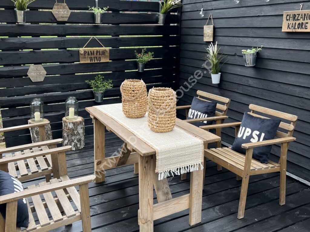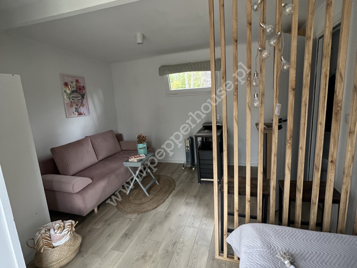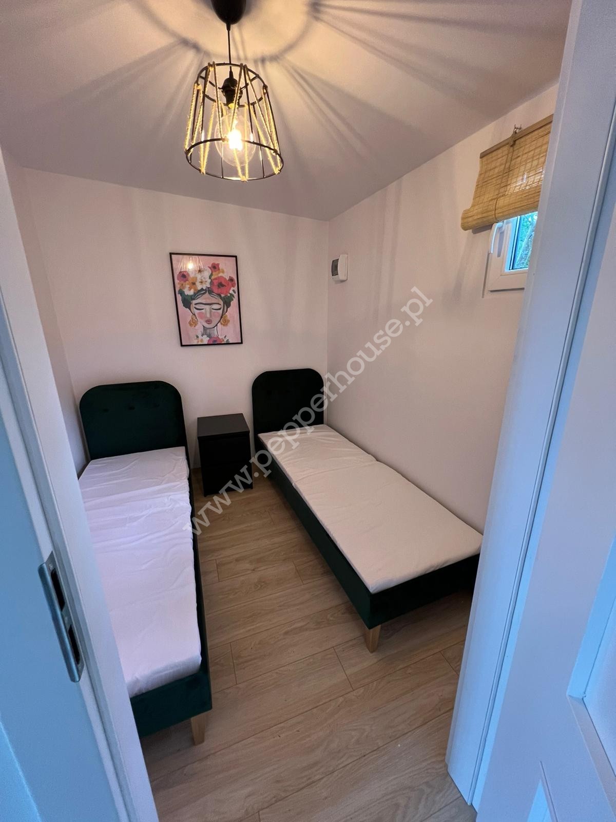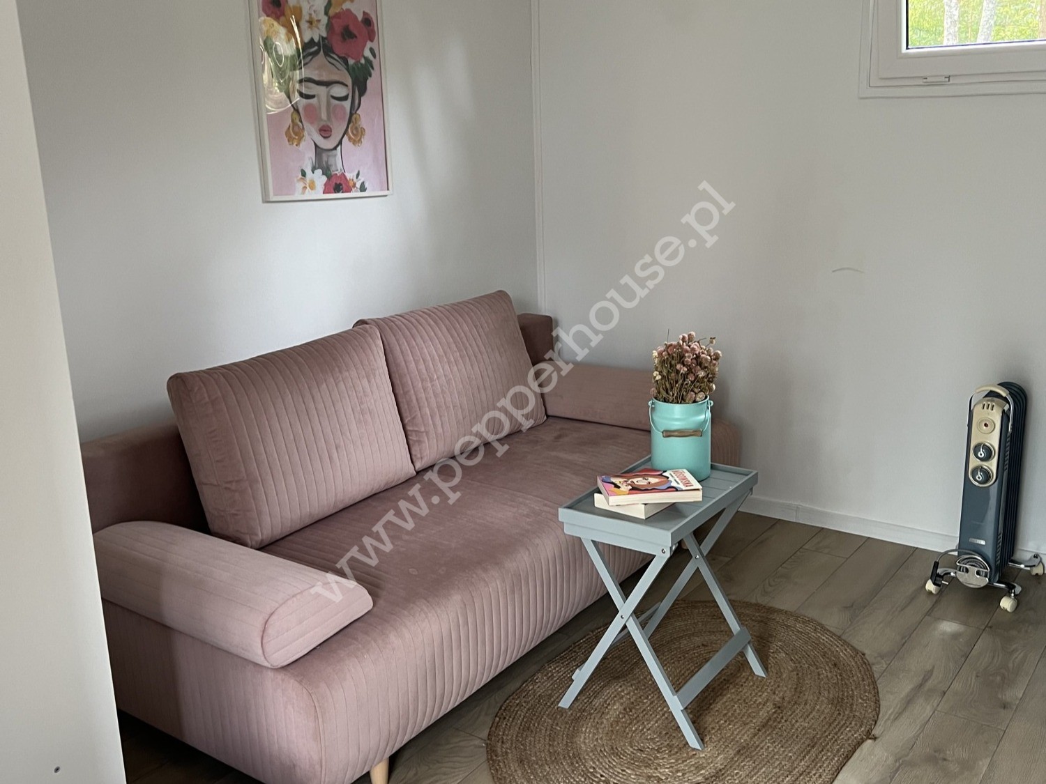 Drewniane domki rekreacyjne ocieplone wełną mineralną. W pomieszczeniach znajdują się panele podłogowe, w łazience wykładzina PCV. W domkach instalacja elektryczna, wodno-kanalizacyjna oraz grzejniki elektryczne. Każdy domek składa się z salonu z aneksem kuchennym, pokoju, łazienki, korytarza oraz drewnianego tarasu.