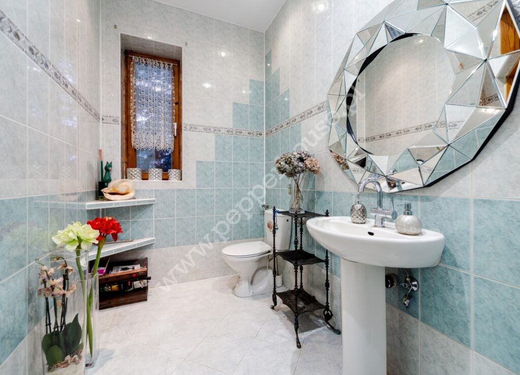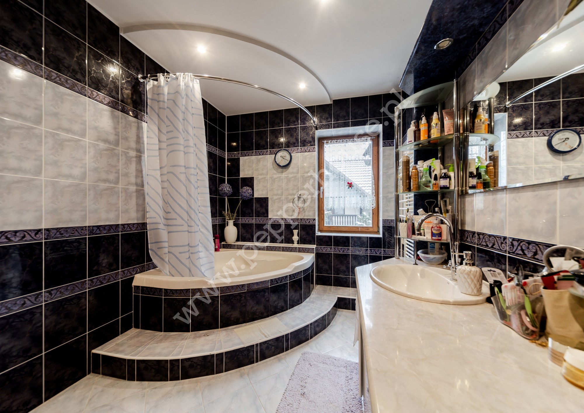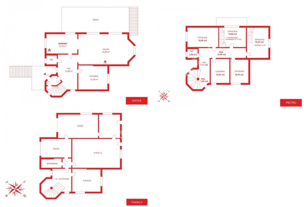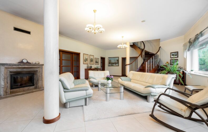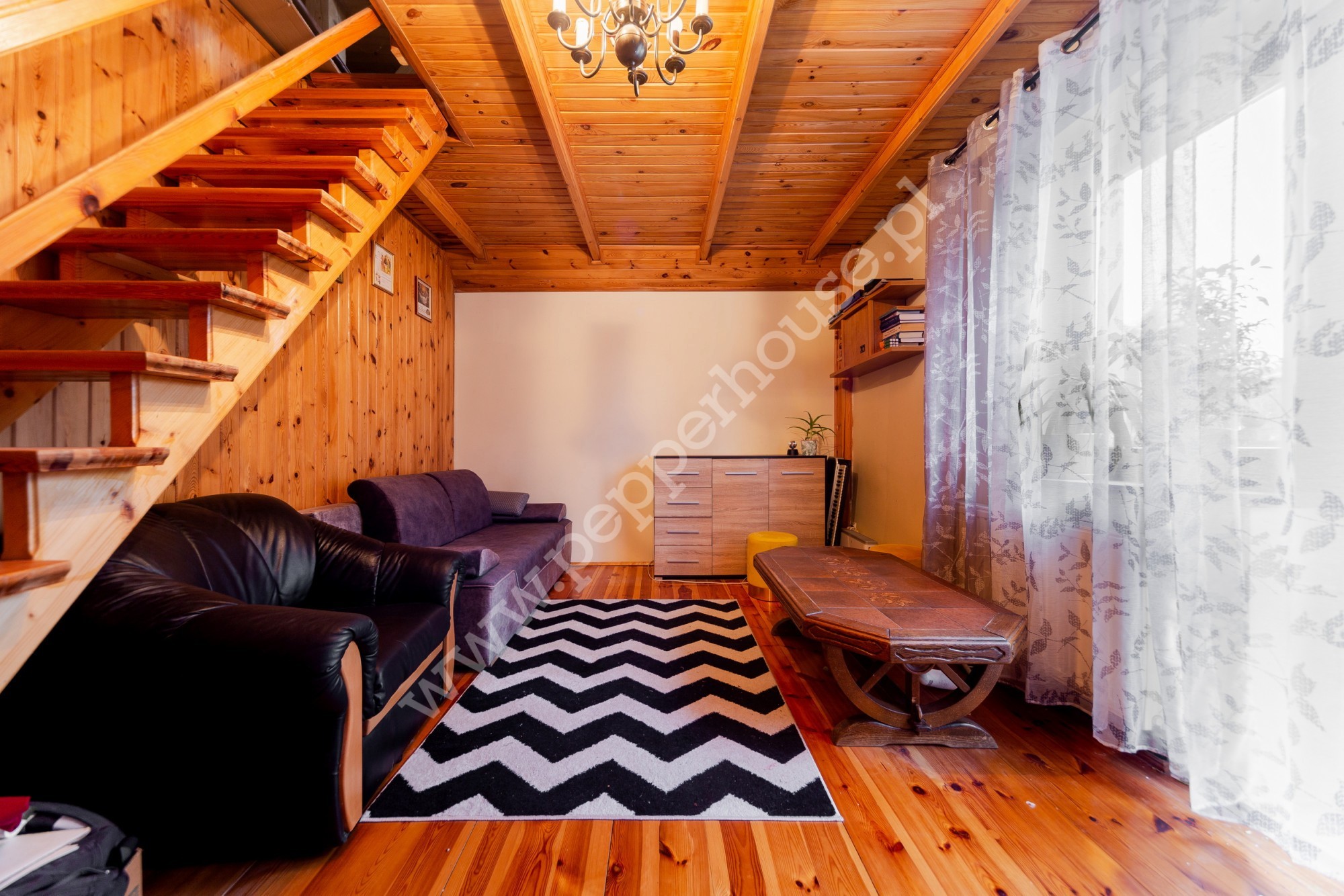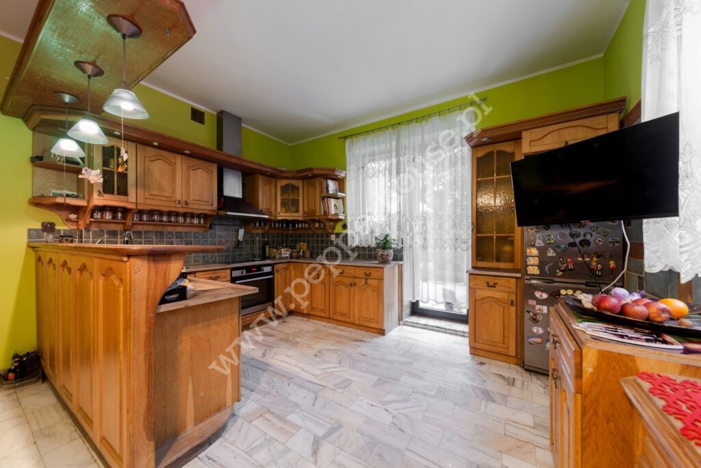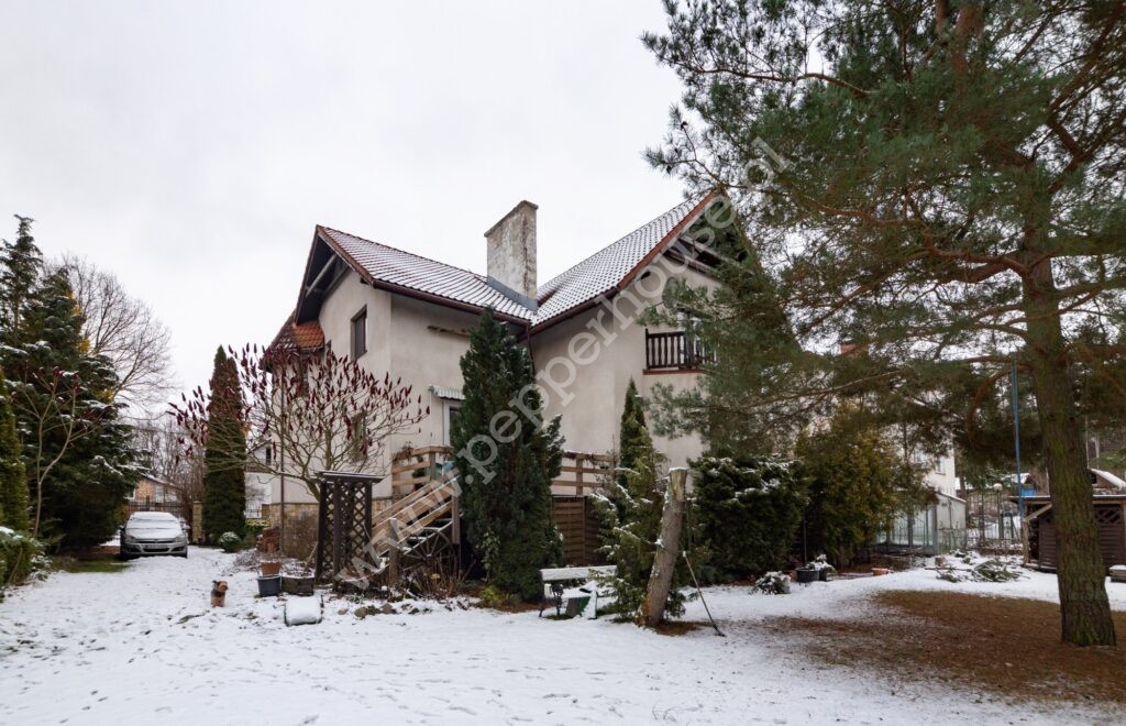Budynek o powierzchni użytkowej 291,97 m2 (dodatkowo podpiwniczenie ok. 120 m2) jest usytuowany na działce o powierzchni 1217 m2. Niebywałym atutem domu z pięknie zagospodarowanym ogrodem jest bliskość lasu iglastego. Na parterze nieruchomości znajduje się przestronny hol, łazienka, przytulny salon urządzony w myśliwskim stylu, elegancki gabinet oraz ustawna kuchnia. Zarówno z kuchni jak i z pokoju dziennego mamy wyjścia na piękne 2 tarasy (w tym jeden o powierzchni aż 60 m2), z których schody zaprowadzą do ogrodu. Dodatkowo na całym parterze zamontowano ogrzewanie podłogowe, a podłogę wyłożono kamieniem, który latem chłodzi, a zimą świetnie oddaje ciepło.