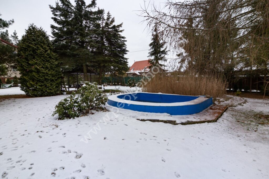 – w ogrodzie: basen z pompą filtrującą wodę w ogrodzie i staw z rybami