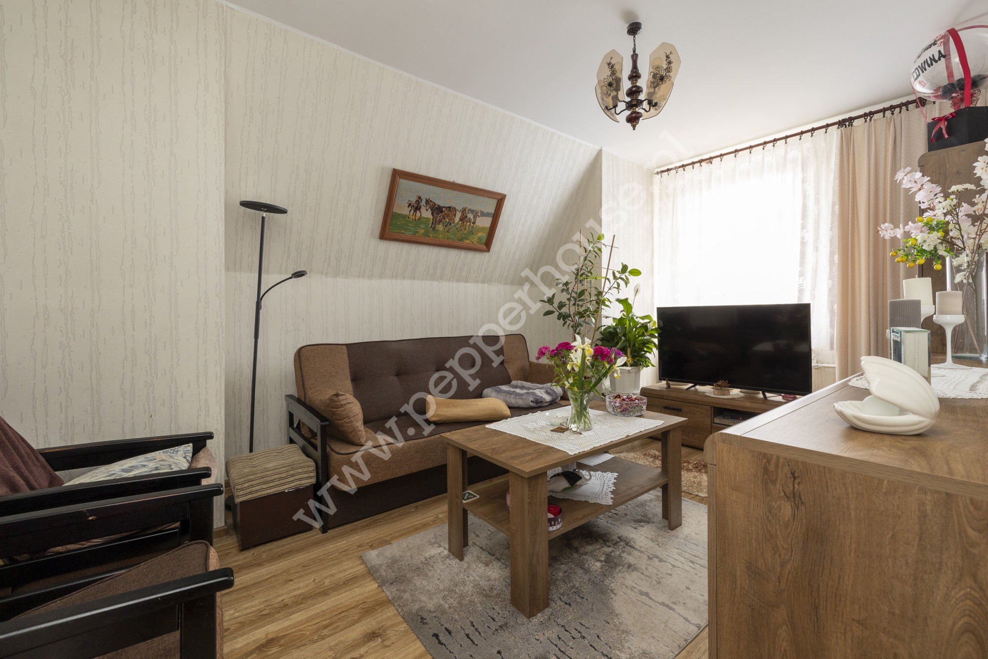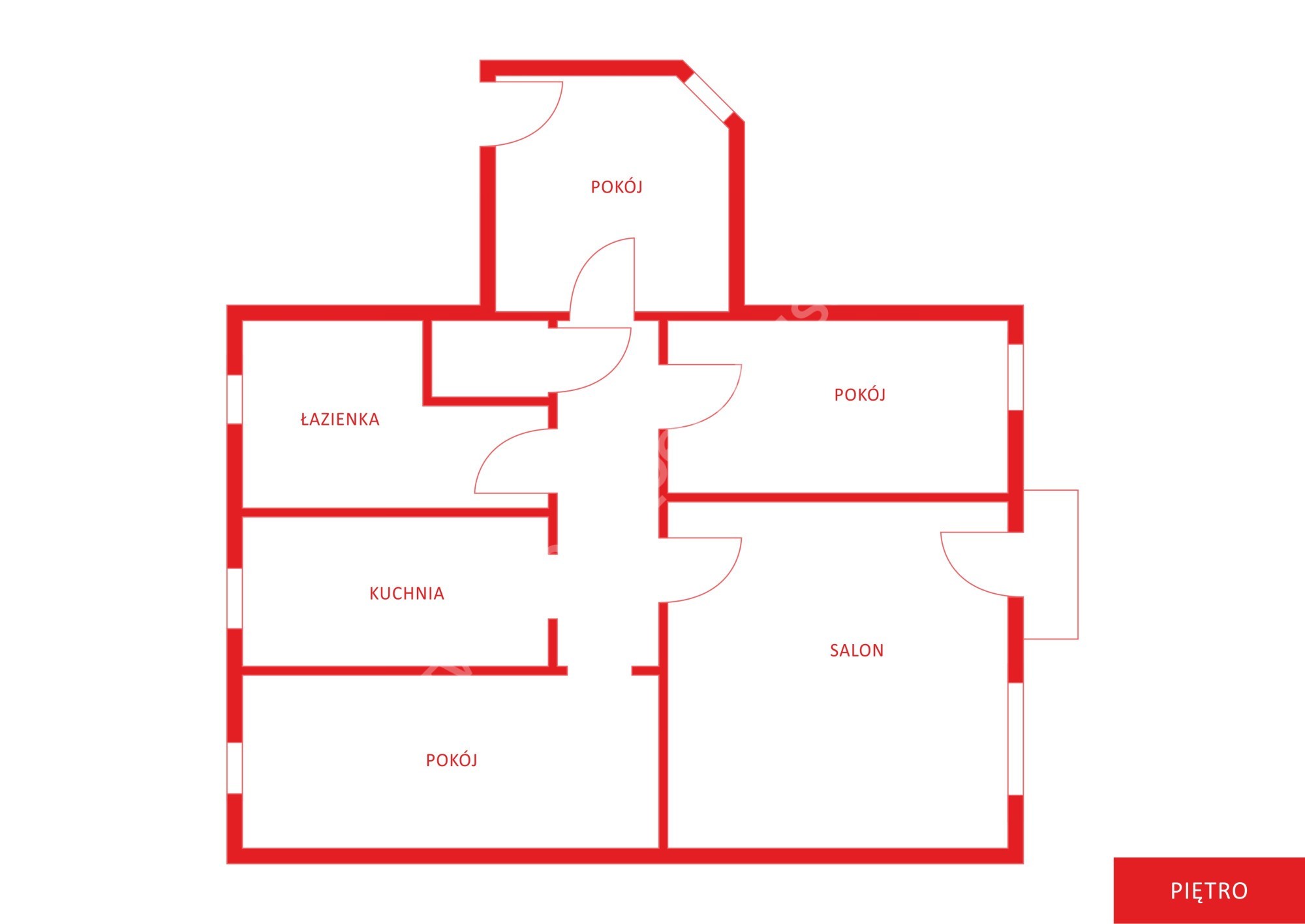 Piętro: 3 pokoje, kuchnia, łazienka – łączna powierzchnia 64 m²