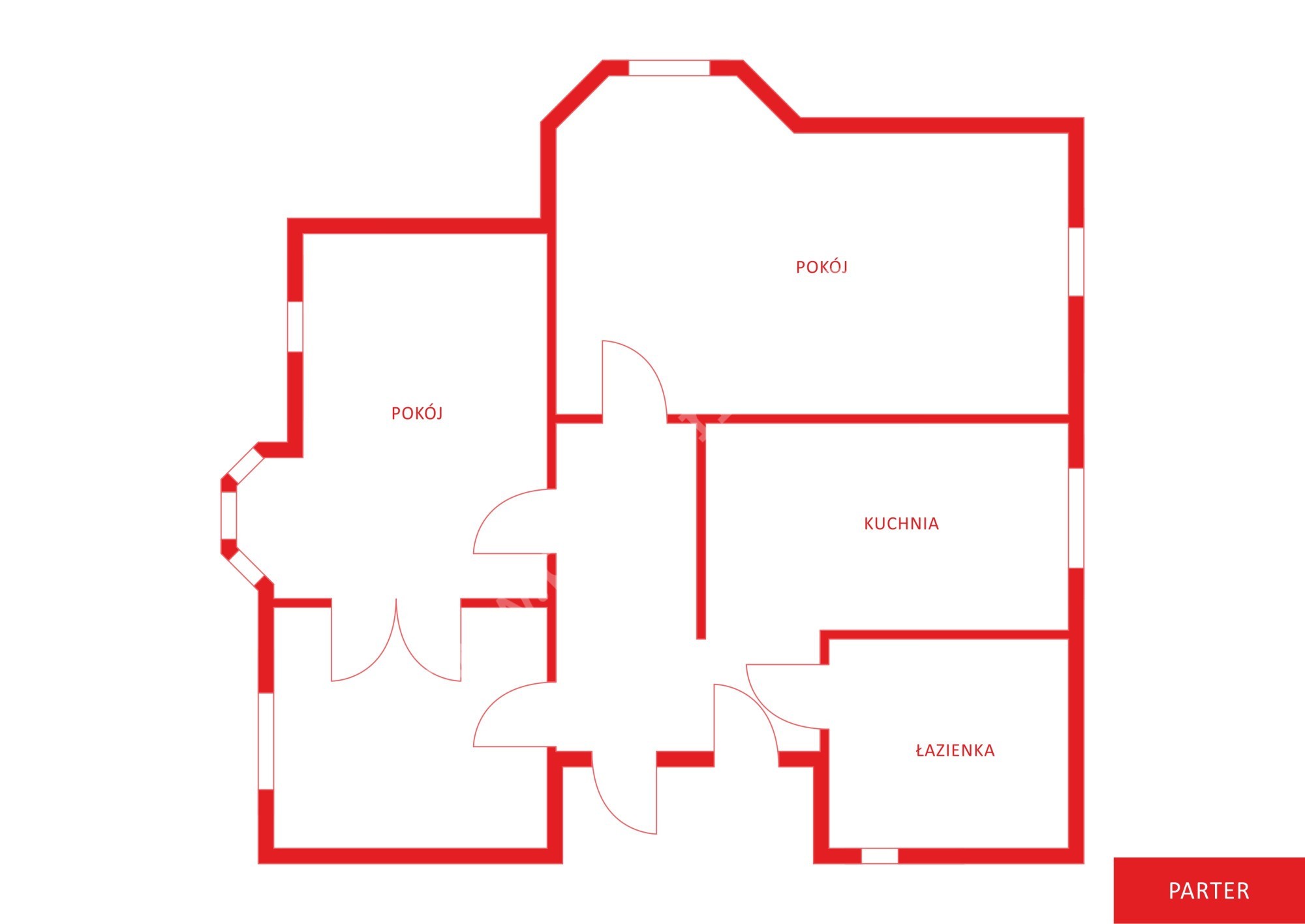 Parter: 3 pokoje, kuchnia, łazienka – łączna powierzchnia 87 m²