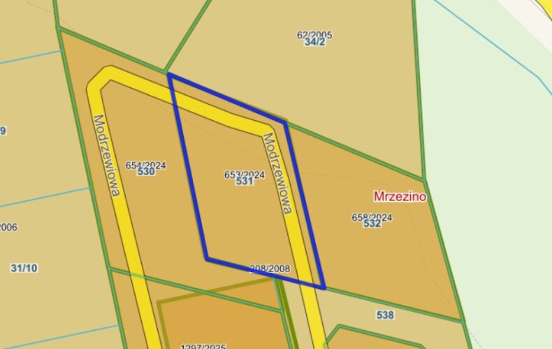 Działka o powierzchni 1 109m2 z wydaną decyzją o warunkach zabudowy.