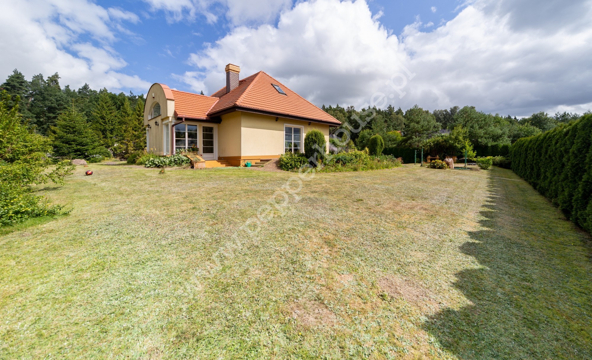 Dom posadowiony jest na działce ( 1871 m2) o regularnym kształcie prostokąta. Działka ogrodzona i uzbrojona w następujące media: energię elektryczną siły i światła, wodociągową, gazową oraz kanalizacyjną. Na terenie posesji znajduje się również studnia wykorzystywana do celów ogrodowych.