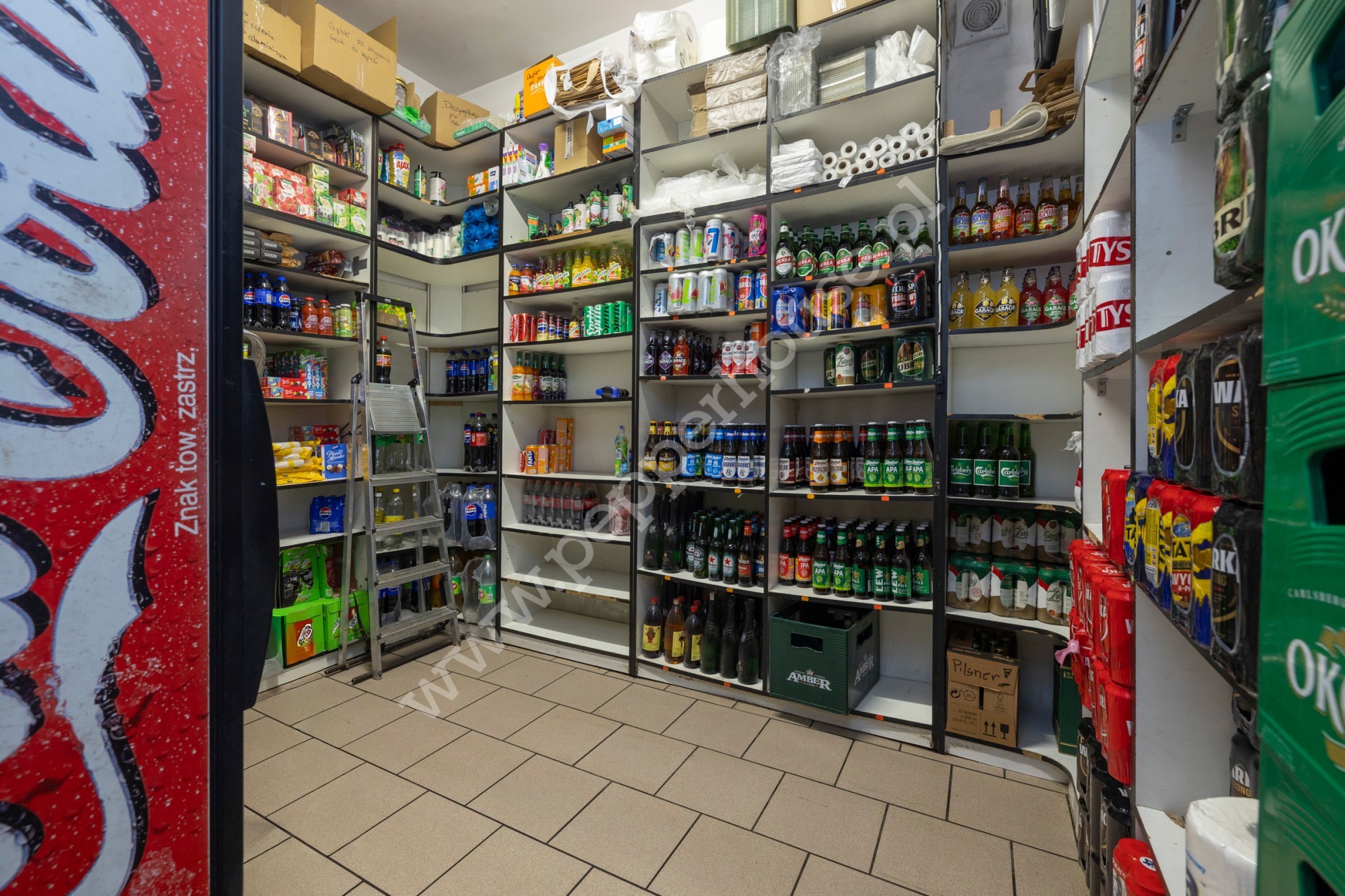 Na parterze o powierzchni 86,77 m² znajduje się w pełni funkcjonalny lokal handlowy z salą sprzedaży, wiatrołapem, korytarzem, WC, magazynem, pomieszczeniem gospodarczym, pomieszczeniem socjalnym oraz schodami prowadzącymi na piętro. Sklep bardzo dobrze prosperuje i działa w tej lokalizacji od wielu lat, co daje możliwość kontynuowania istniejącej działalności lub adaptacji pod własny biznes.