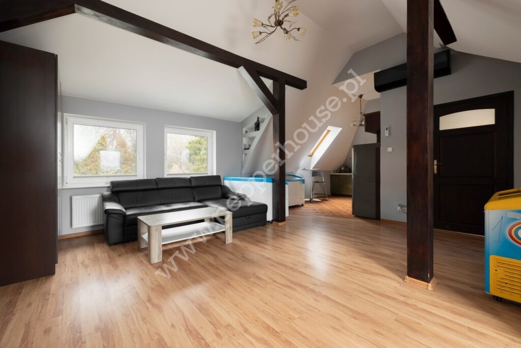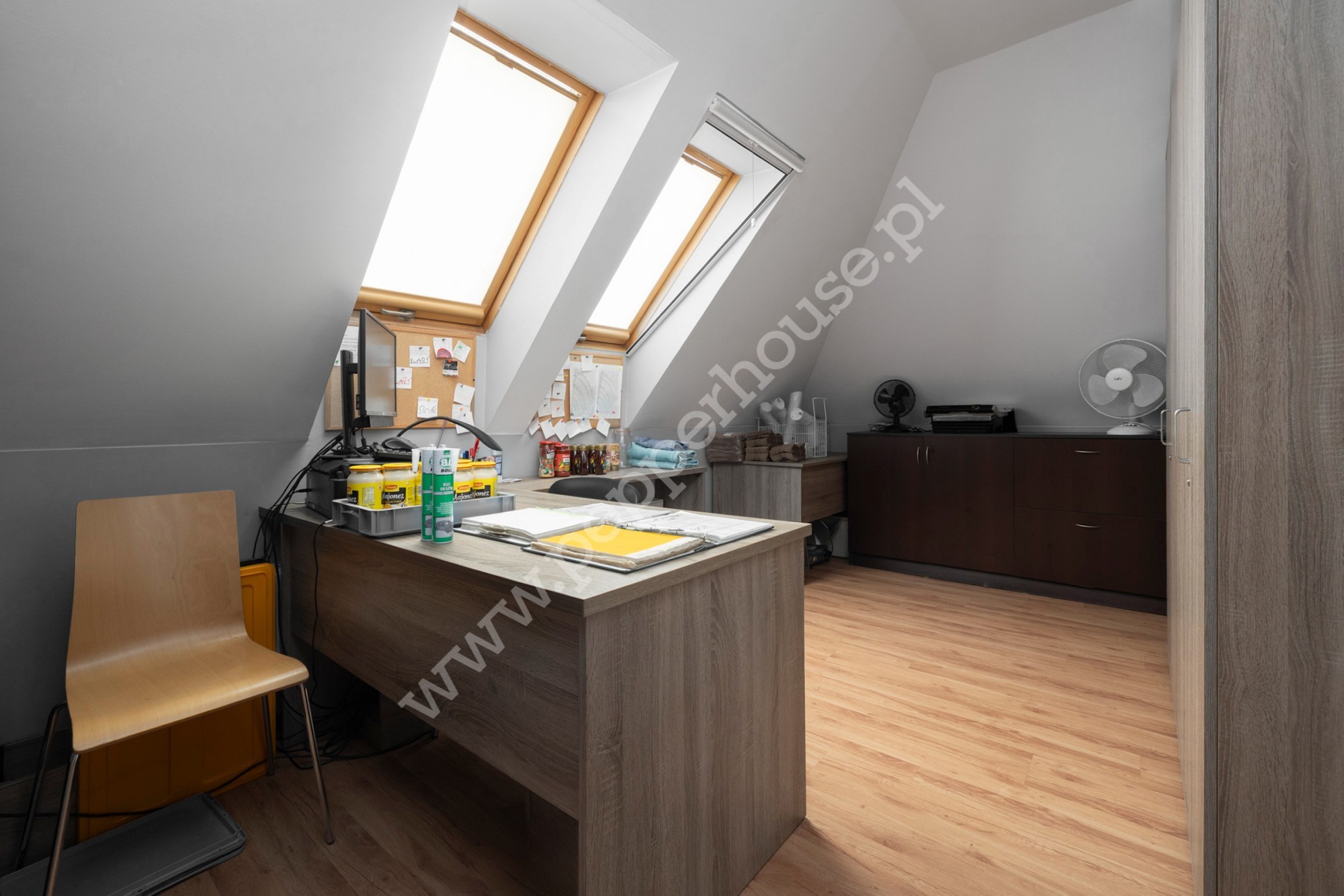 Piętro o powierzchni 69,28 m² to komfortowy lokal mieszkalny z salonem z aneksem kuchennym, osobną kuchnią, łazienką, dwoma pokojami i korytarzem. Istnieje możliwość wykorzystania tej części jako zaplecza dla działalności – np. gabinetu, pomieszczenia socjalnego lub biura – zapewniając jednocześnie prywatność i wygodę codziennego życia.