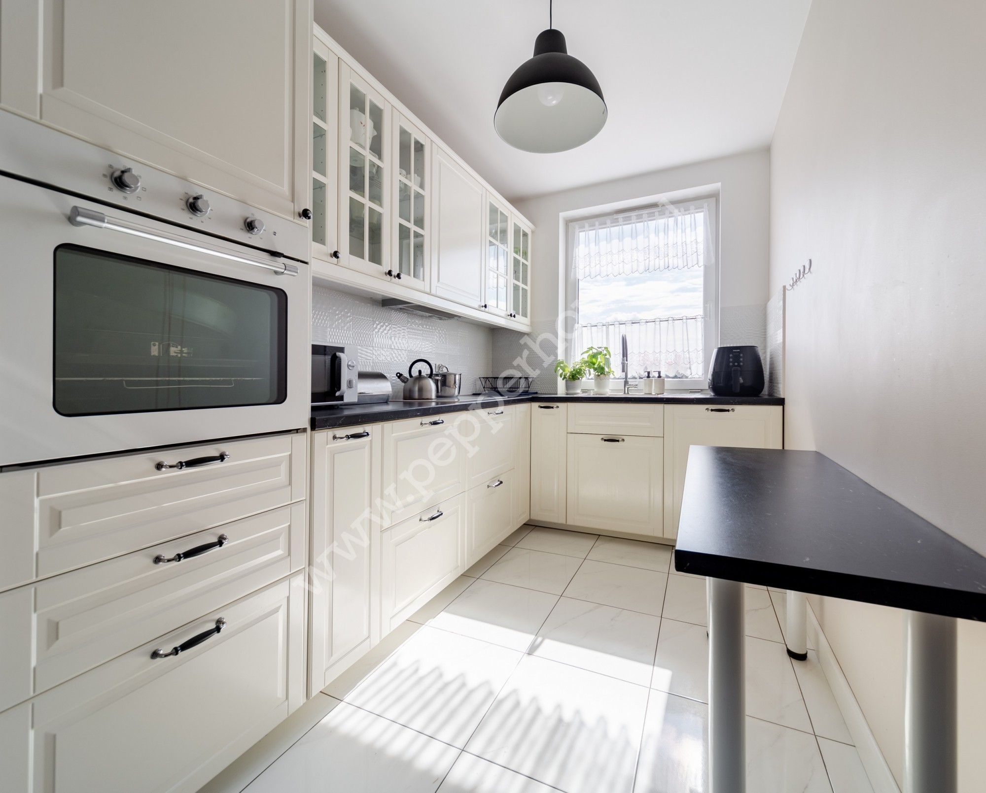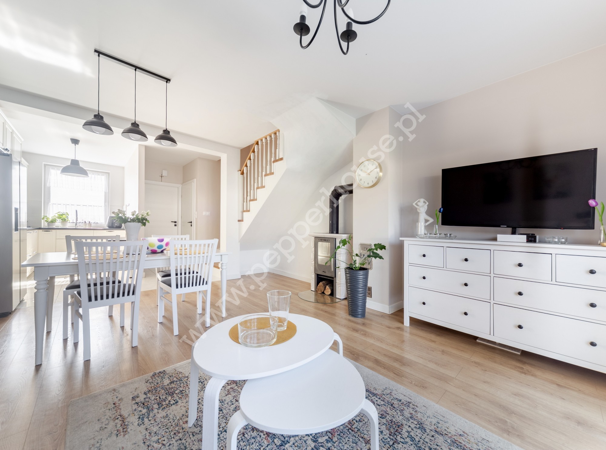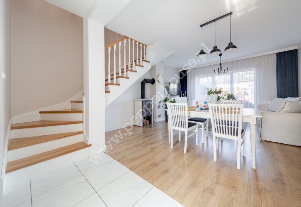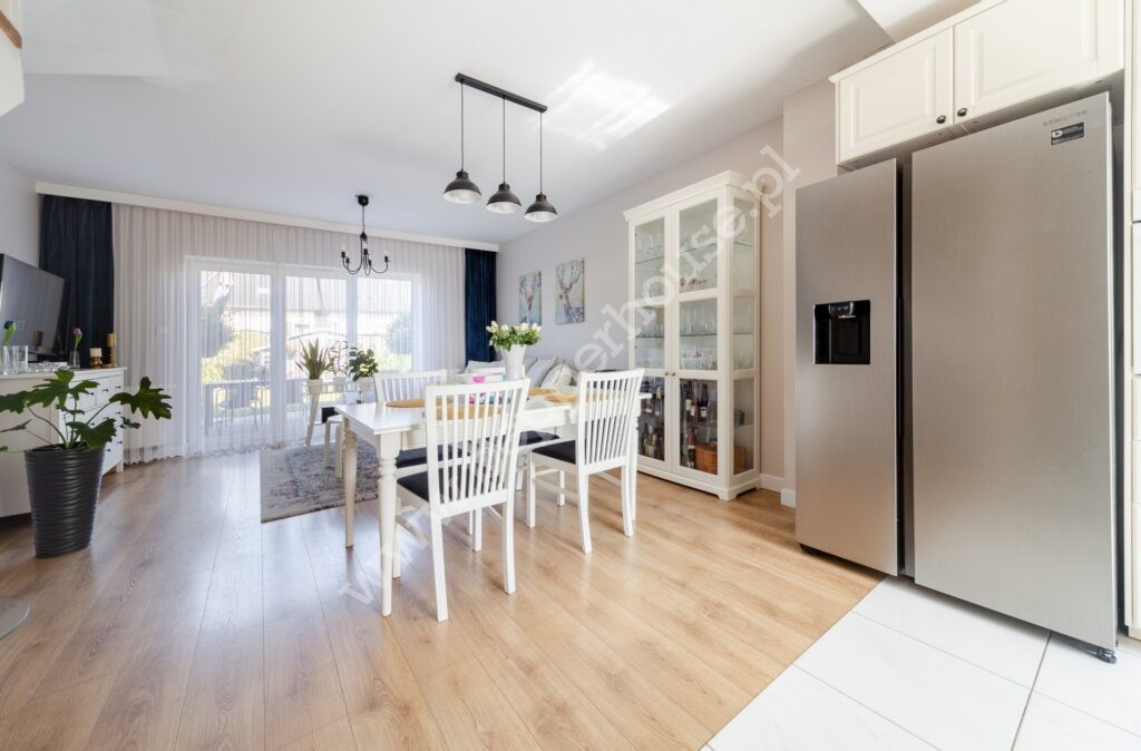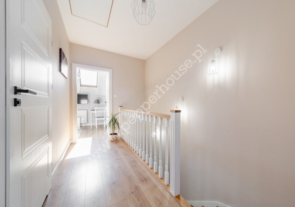 Nieruchomość wykończona w wysokim standardzie z dbałością o szczegóły. Neutralne i gustowne wnętrza spodobają się osobom ceniącym ponadczasową elegancję. Jasne podłogi z ponadprzeciętną wysokością pomieszczeń dodają przestronności. Dwustronna ekspozycja zapewnia doświetlenie słońcem przez cały dzień. Na podłogach wyłożono wysokiej jakości panel (12 mm), a schody ułożone są dębiną. Klimatu dodaje także piękny kominek do wykorzystania w chłodne wieczory.