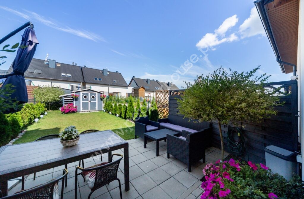 Budynek typu bliźniak to nowoczesna konstrukcja z dużą działką. Od zachodu mamy do dyspozycji przestronny, pięknie urządzony ogród z altaną gospodarczą, meble ogrodowe i dużą przestrzeń dla dzieci. Wejście do ogrodu jest możliwe także spoza budynku. Przed budynkiem wygospodarowano miejsce postojowe na samochód.