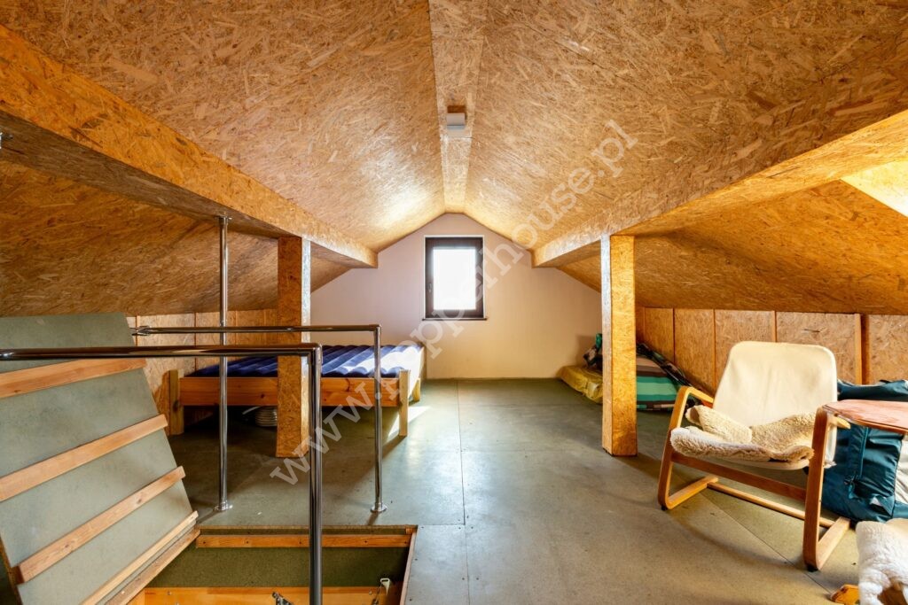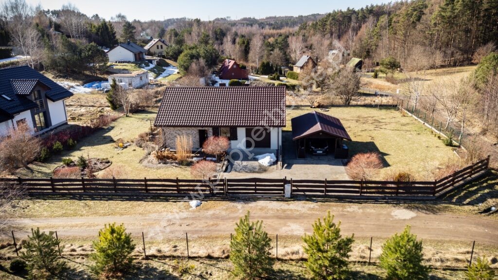 Dom z roku 2018r parterowy, murowany z zaadoptowanym poddaszem. Na parterze: hall, sypialnia, salon, kuchnia, garaż, łazienka z pralnią. Na poddaszu druga łazienka i otwarta przestrzeń.