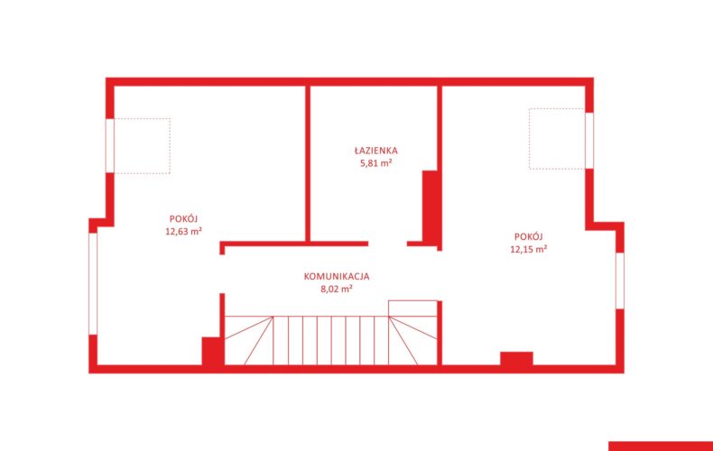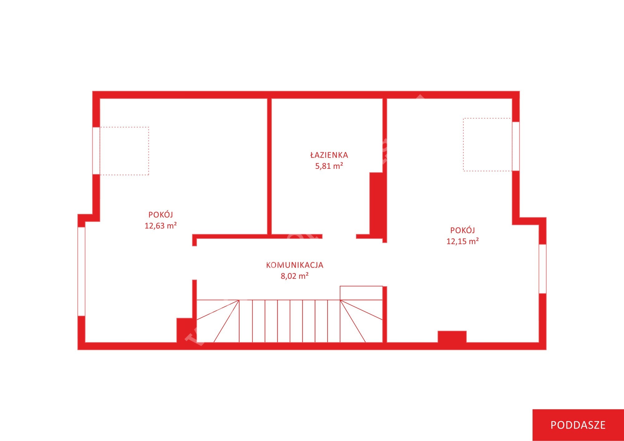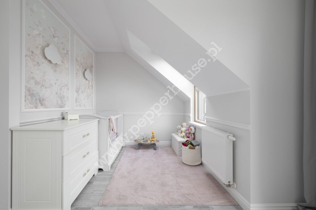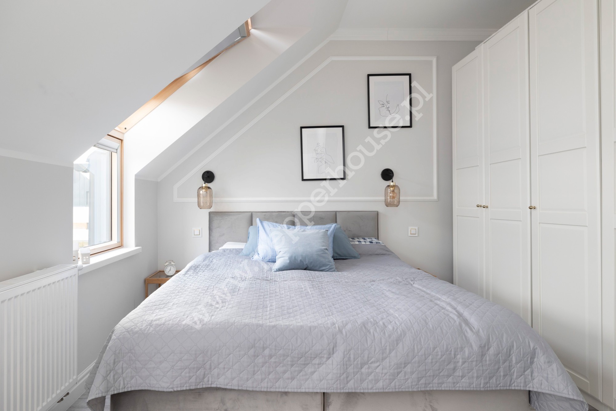 Na piętrze znajduje się główna sypialnia, pokój oraz łazienka z wanną.