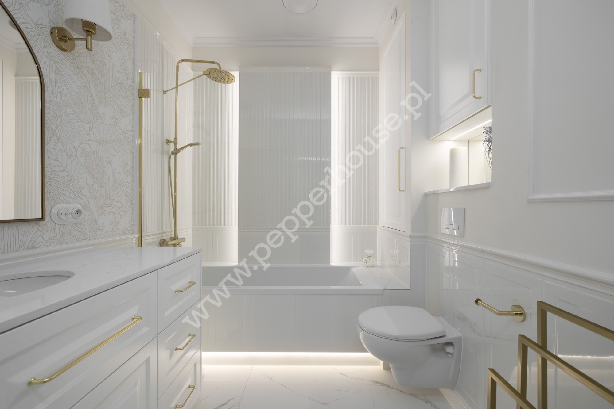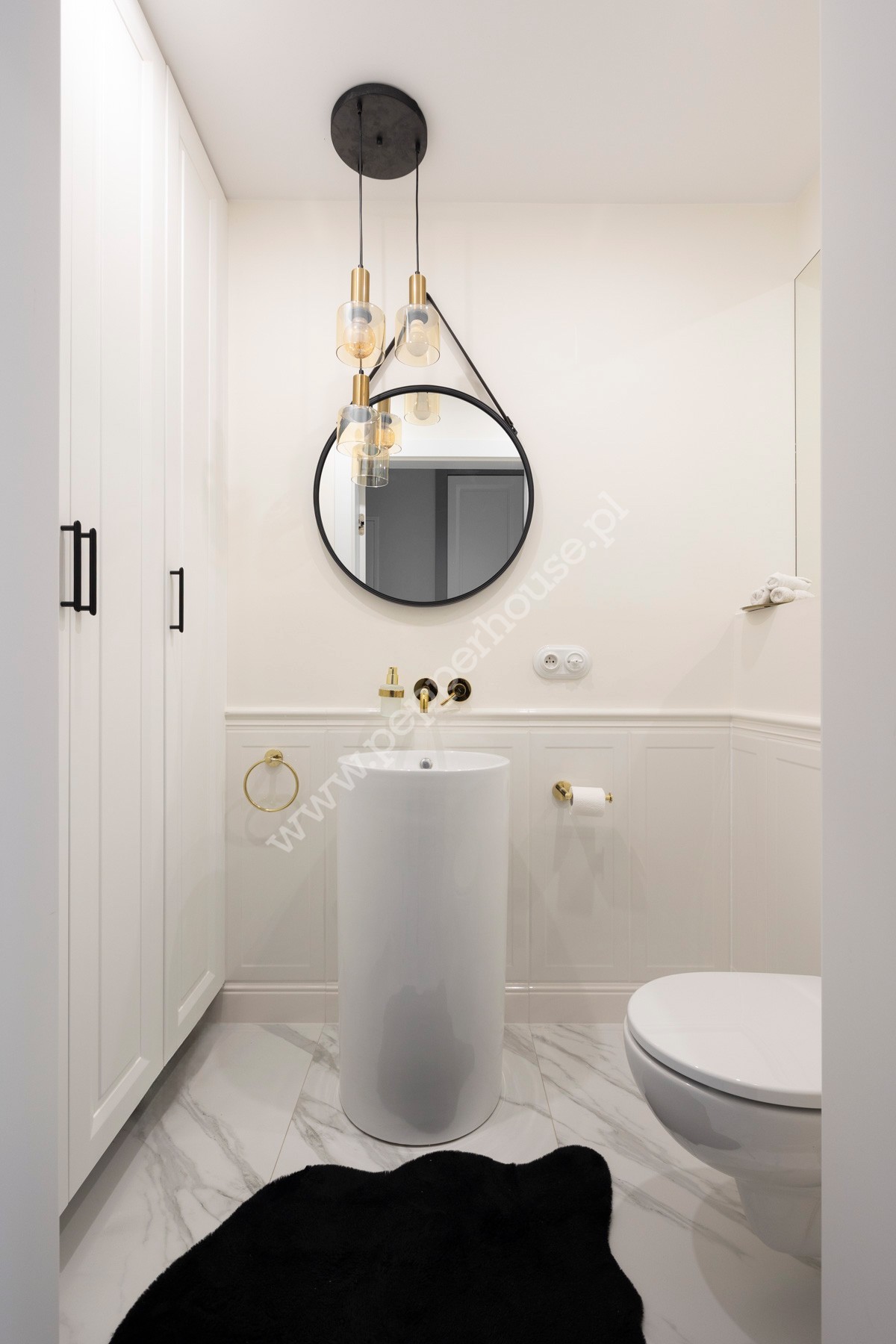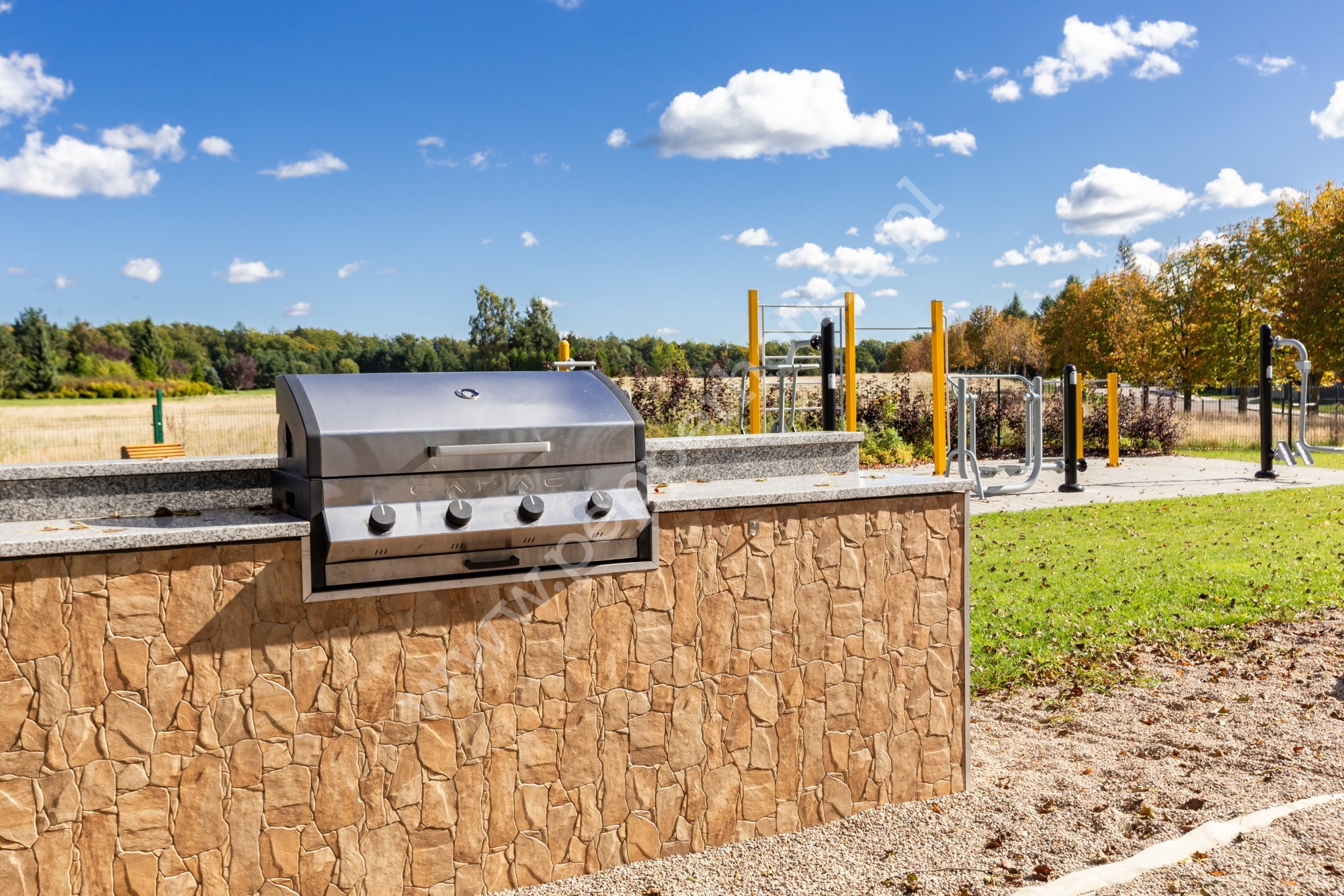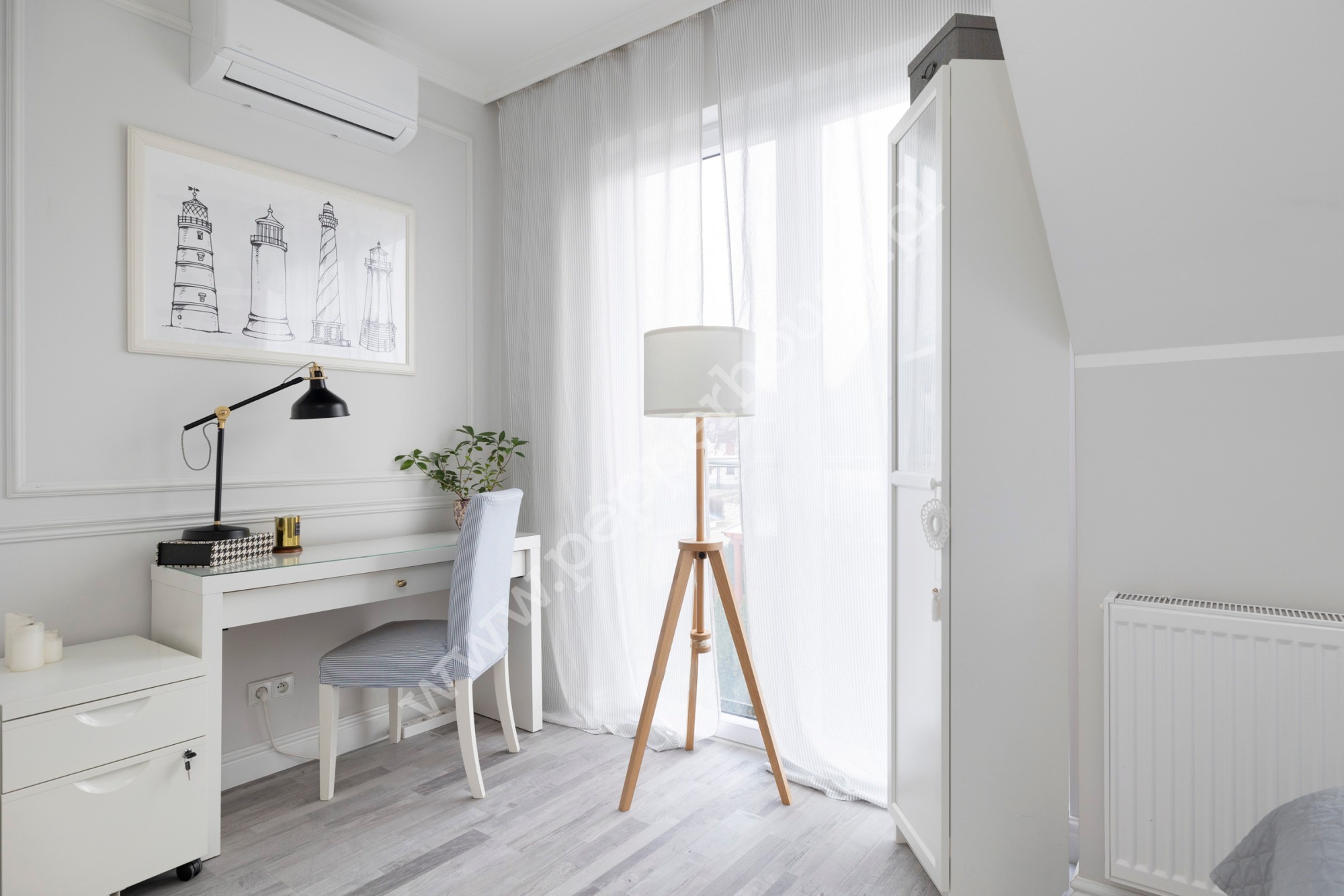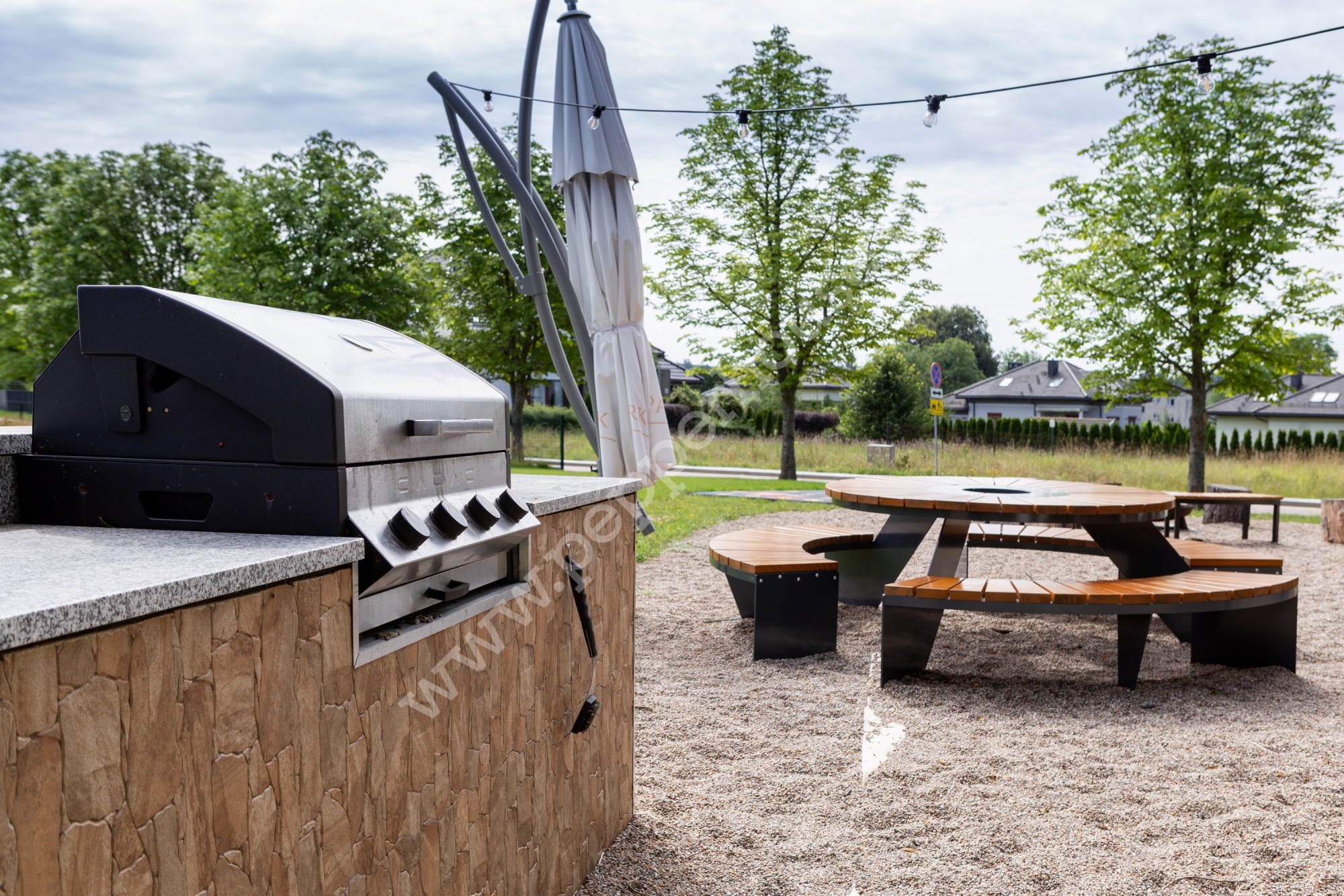 W salonie dodatkowo zainstalowana została kominek wolnostojący, który otuli swoim ciepłem zarówno w zimniejsze, jak i romantyczne wieczory. Całość wykończona w jasnych, spójnych barwach. Nowoczesna kuchnia zachwyca ponadczasowymi rozwiązaniami.