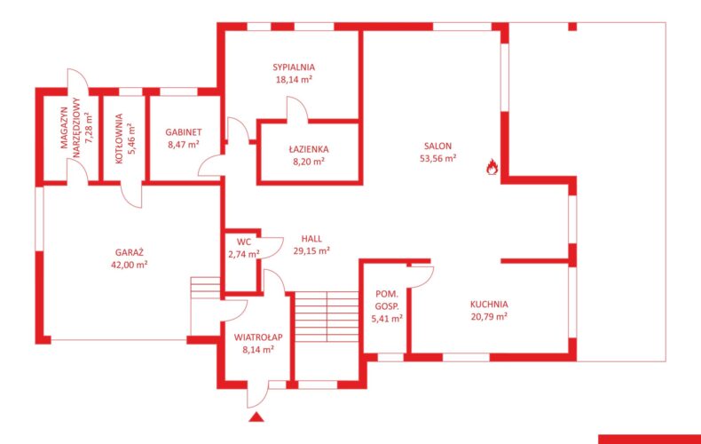 – Garaż na 2 samochody z pomieszczeniem narzędziowym i kotłownią (54,74 m2)