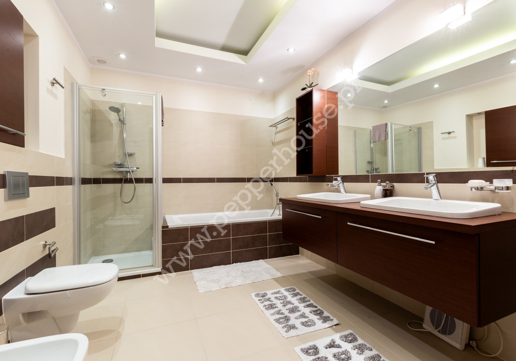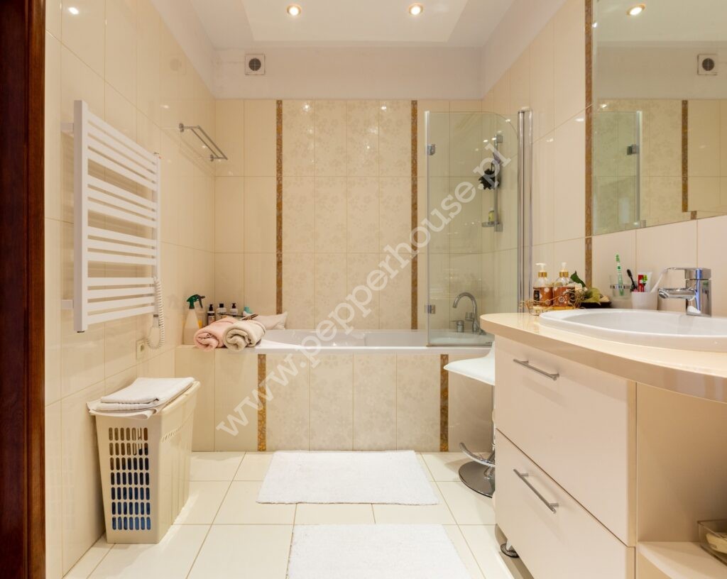 – 2 nowoczesne łazienki, w tym jedna z prysznicem, a druga wyposażona zarówno w prysznic i wannę (10,10 m2, 9,59 m2)