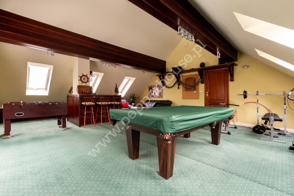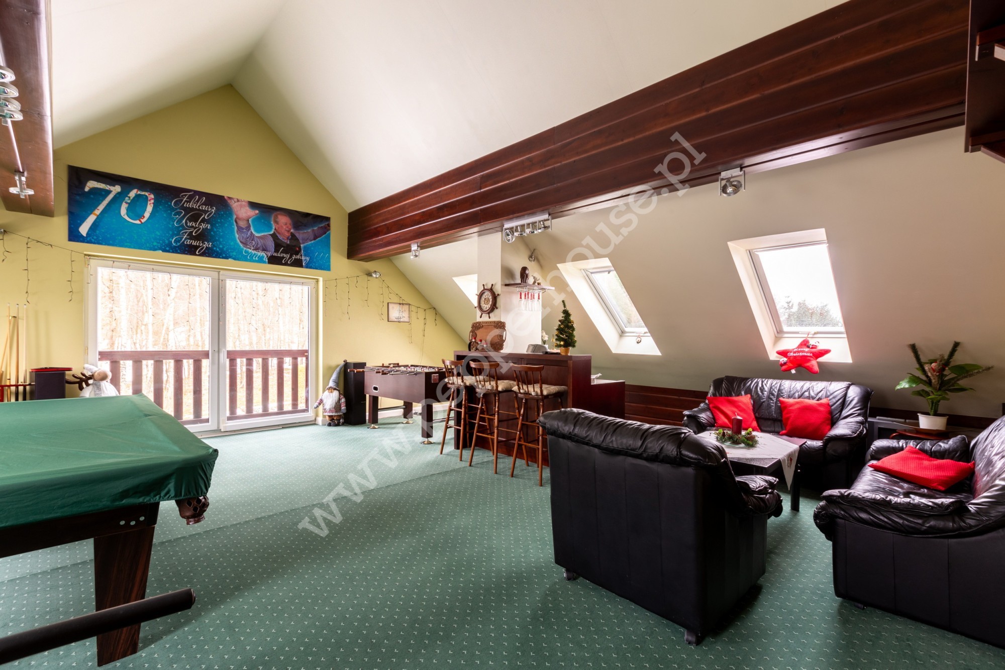 – Pokój rekreacyjny wyposażony w stół bilardowy, dart, piłkarzyki, bar, strefę wypoczynku – doskonałe miejsce do wspólnego spędzania czasu z rodziną i przyjaciółmi (40,33 m2)