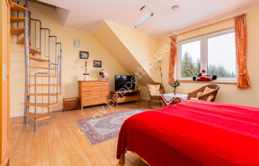 Na terenie posesji znajduje się przestronny dom gościnny o powierzchni 100 m2, idealny dla gości lub jako niezależna przestrzeń dla pracowników/obsługi posiadłości. Dom składa się z apartamentu z własną kuchnią oraz łazienką. Dzięki temu goście mogą cieszyć się pełną prywatnością i komfortem. Funkcjonalny układ sprawiają, że jest to doskonałe miejsce na odpoczynek lub krótkoterminowy pobyt. W domku gościnnym znajduje się duży garaż na dwa stanowiska.
