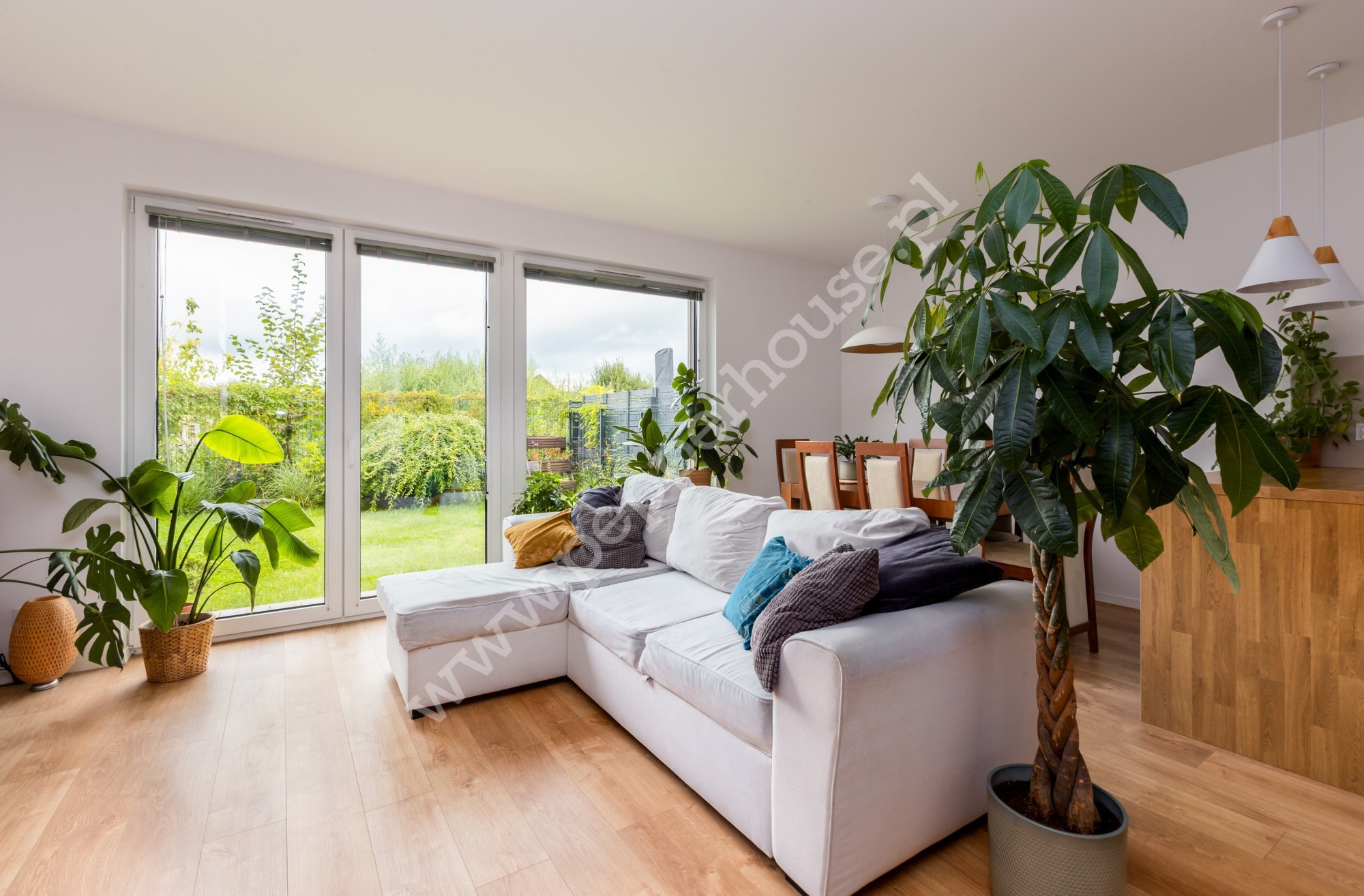 Na sprzedaż komfortowy dom w zabudowie bliźniaczej o powierzchni 112,47 m² użytkowej, 174,64 m² powierzchni całkowitej. Nieruchomość wybudowana w 2022 roku, położona w Pogórzu, w gminie Kosakowo, na nowoczesnym i zamkniętym osiedlu Avior Park.