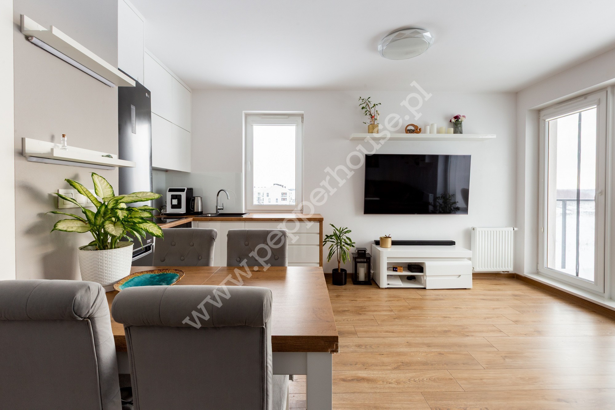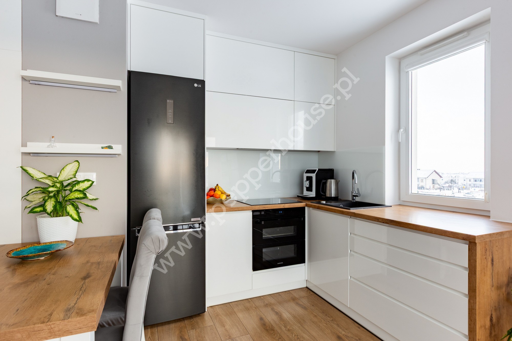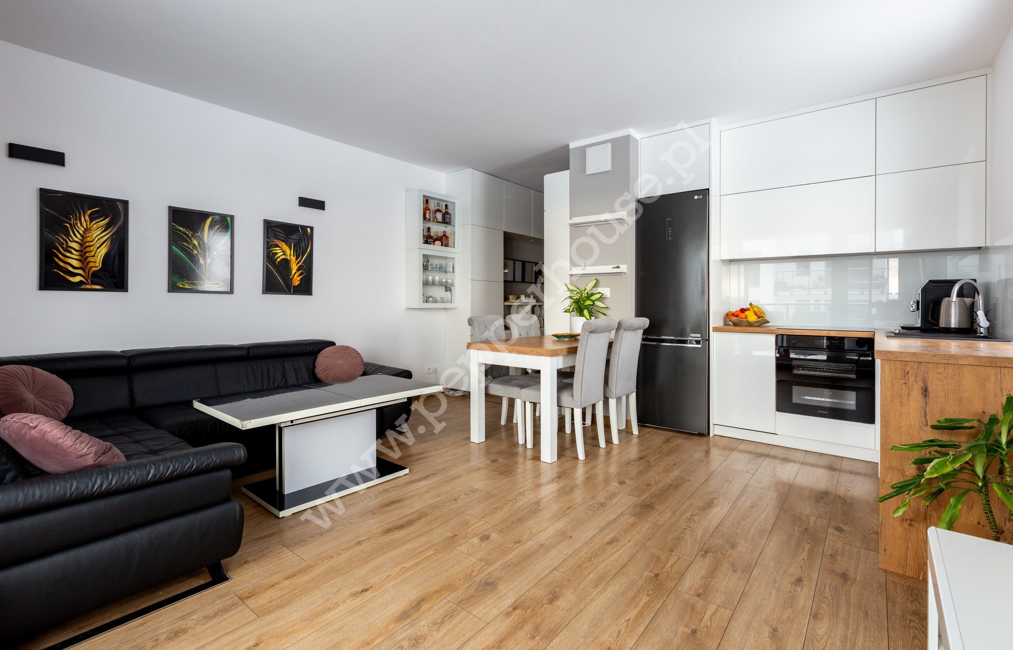 Mieszkanie jest wykończone w wysokim standardzie i sprzedawane w pełni umeblowane. Na wyposażeniu m.in.: lodówka/zamrażarka LG, pralka inwerterowa LG, piekarnik Samsung Dual Cook, płyta indukcyjna Samsung Flex, armatura głównie Grohe, oświetlenie LED w kuchni. Kuchnia oraz szafa w przedpokoju zostały wykonane na zamówienie w wysokim połysku, a na oknach znajdują się rolety dzień/noc oraz moskitiery.