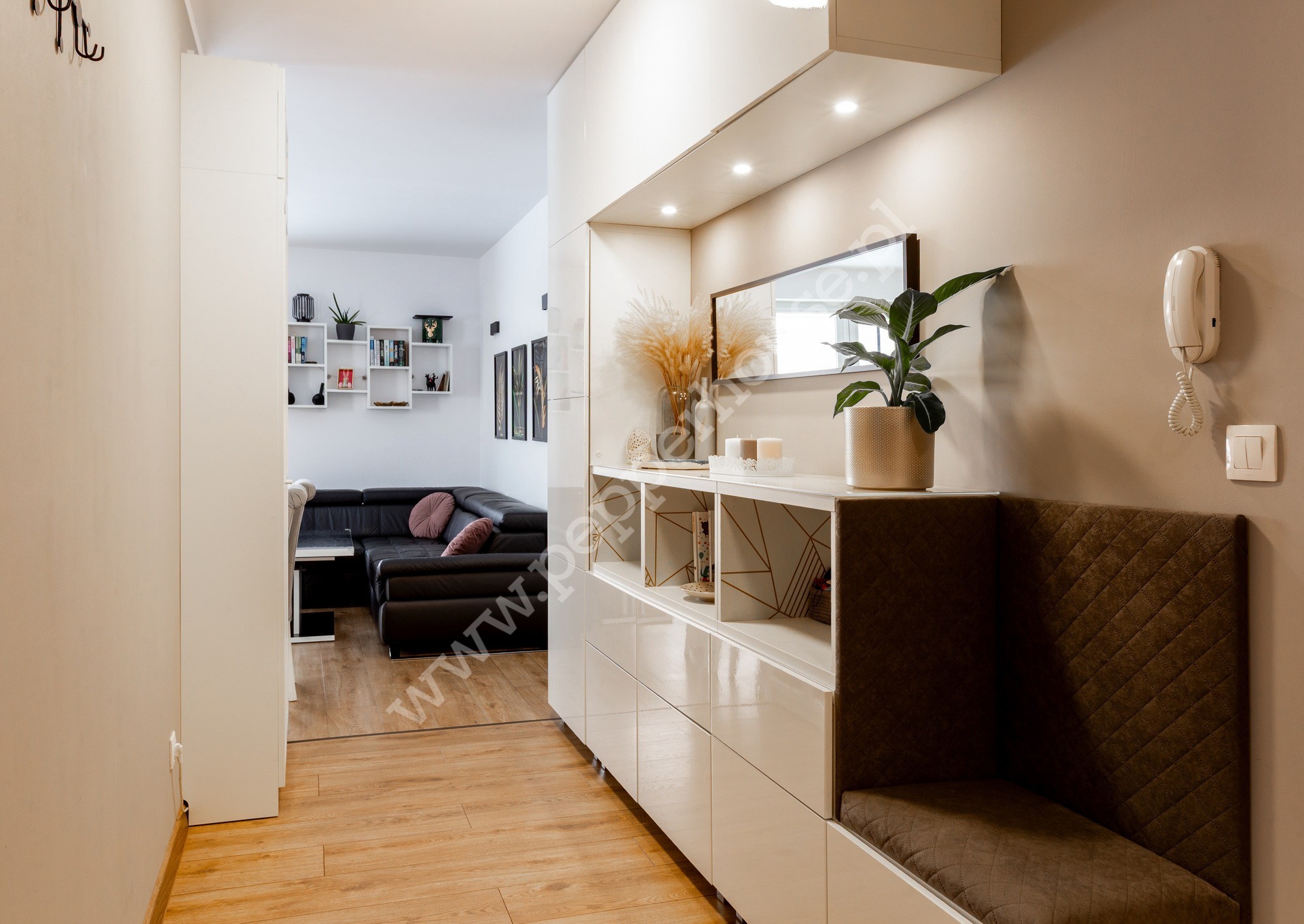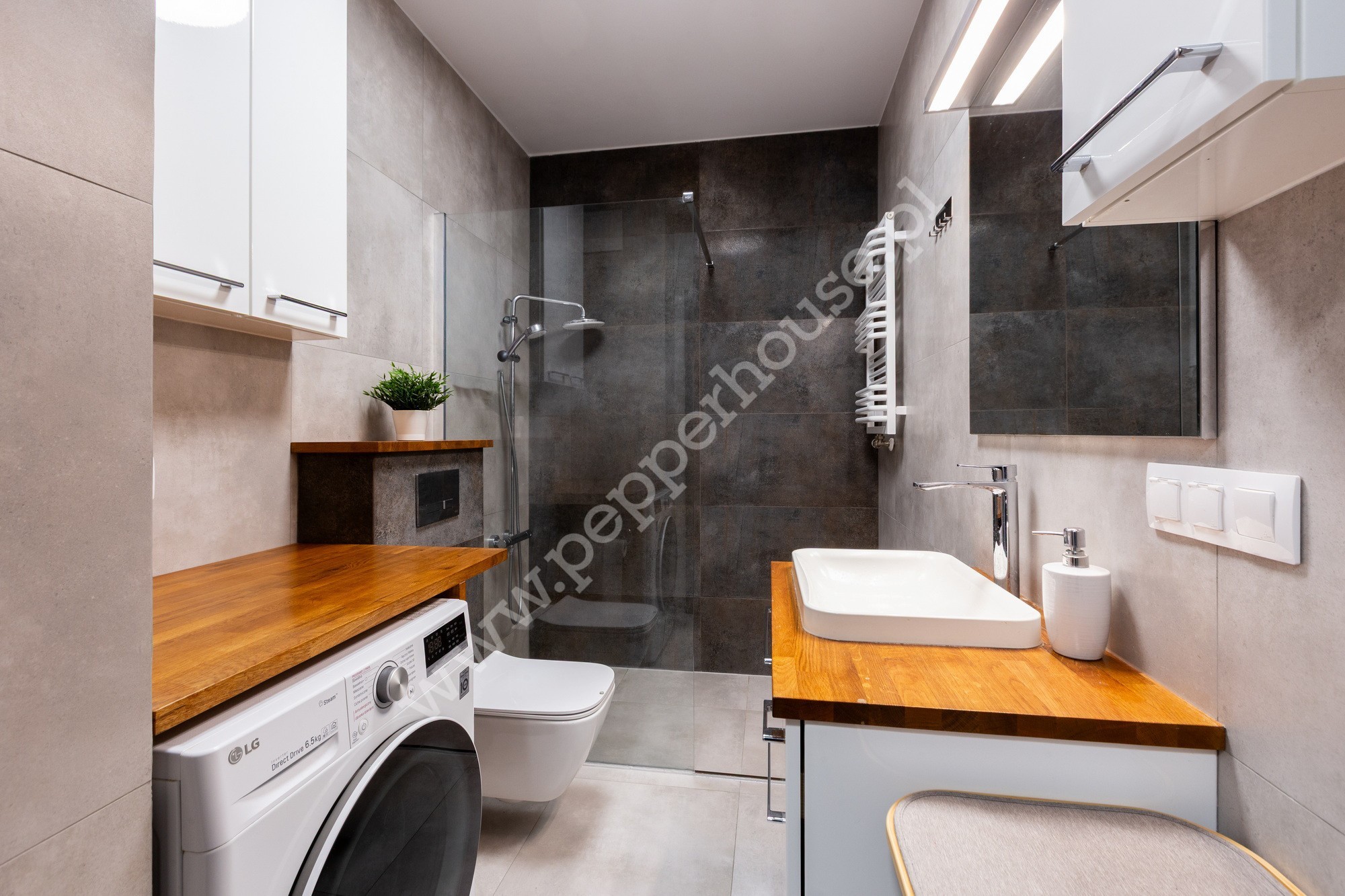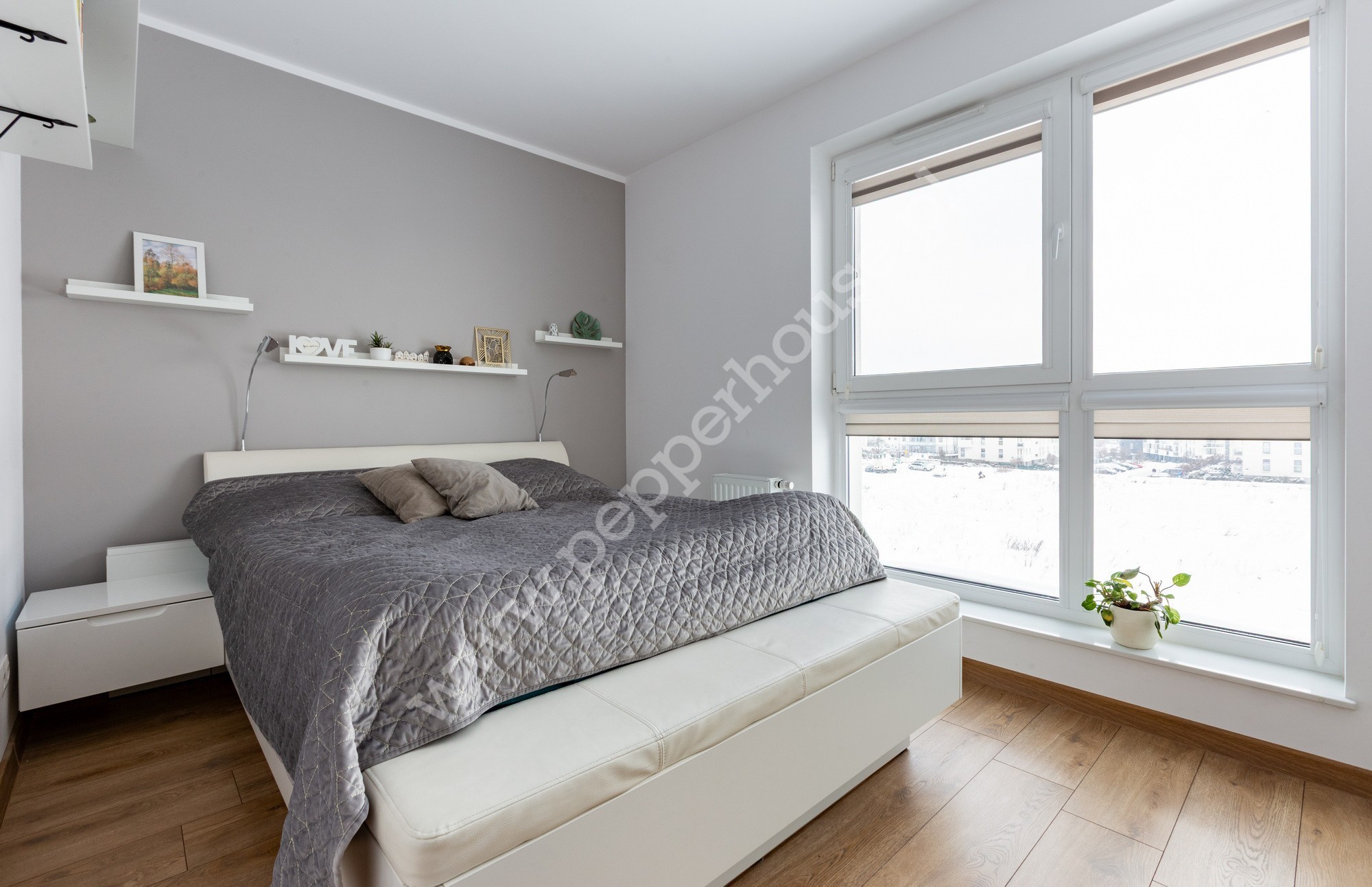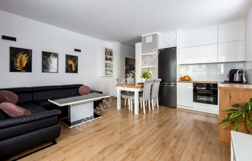 Mieszkanie jest wykończone w wysokim standardzie i sprzedawane w pełni umeblowane. Na wyposażeniu m.in.: lodówka/zamrażarka LG, pralka inwerterowa LG, piekarnik Samsung Dual Cook, płyta indukcyjna Samsung Flex, armatura głównie Grohe, oświetlenie LED w kuchni. Kuchnia oraz szafa w przedpokoju zostały wykonane na zamówienie w wysokim połysku, a na oknach znajdują się rolety dzień/noc oraz moskitiery.
