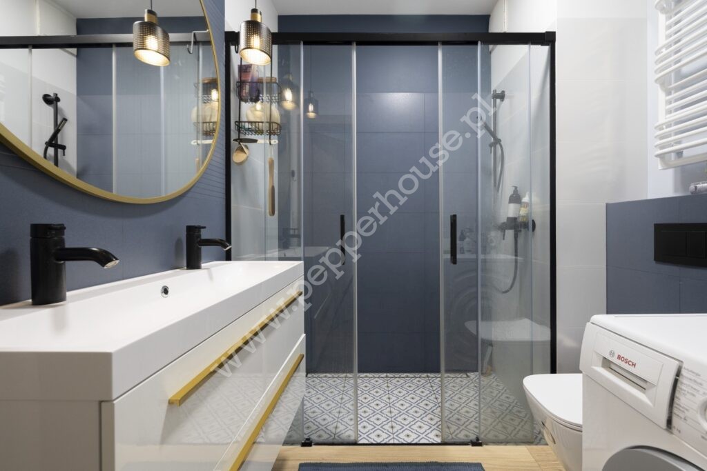 – łazienka z prysznicem oraz ogrzewaniem podłogowym
