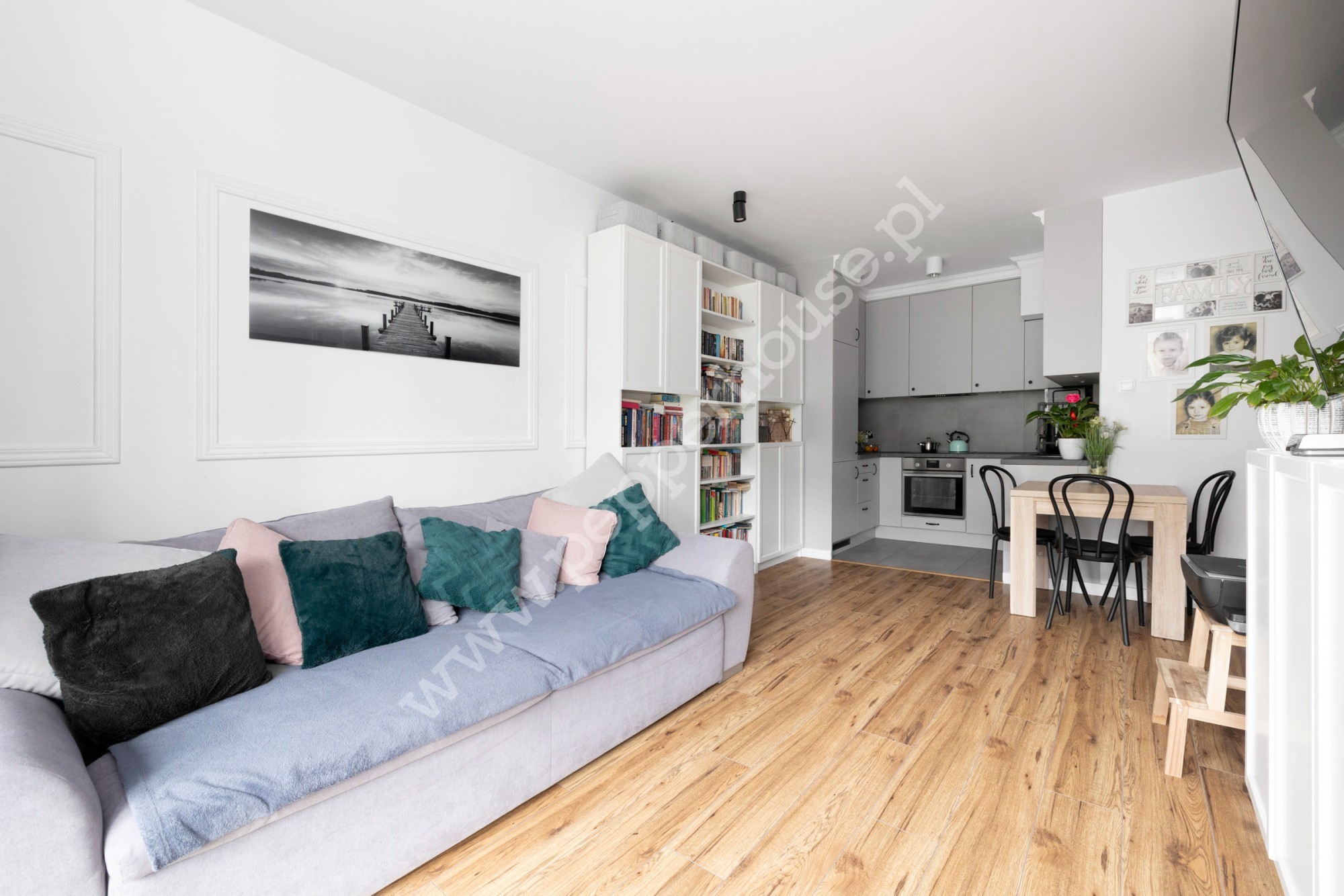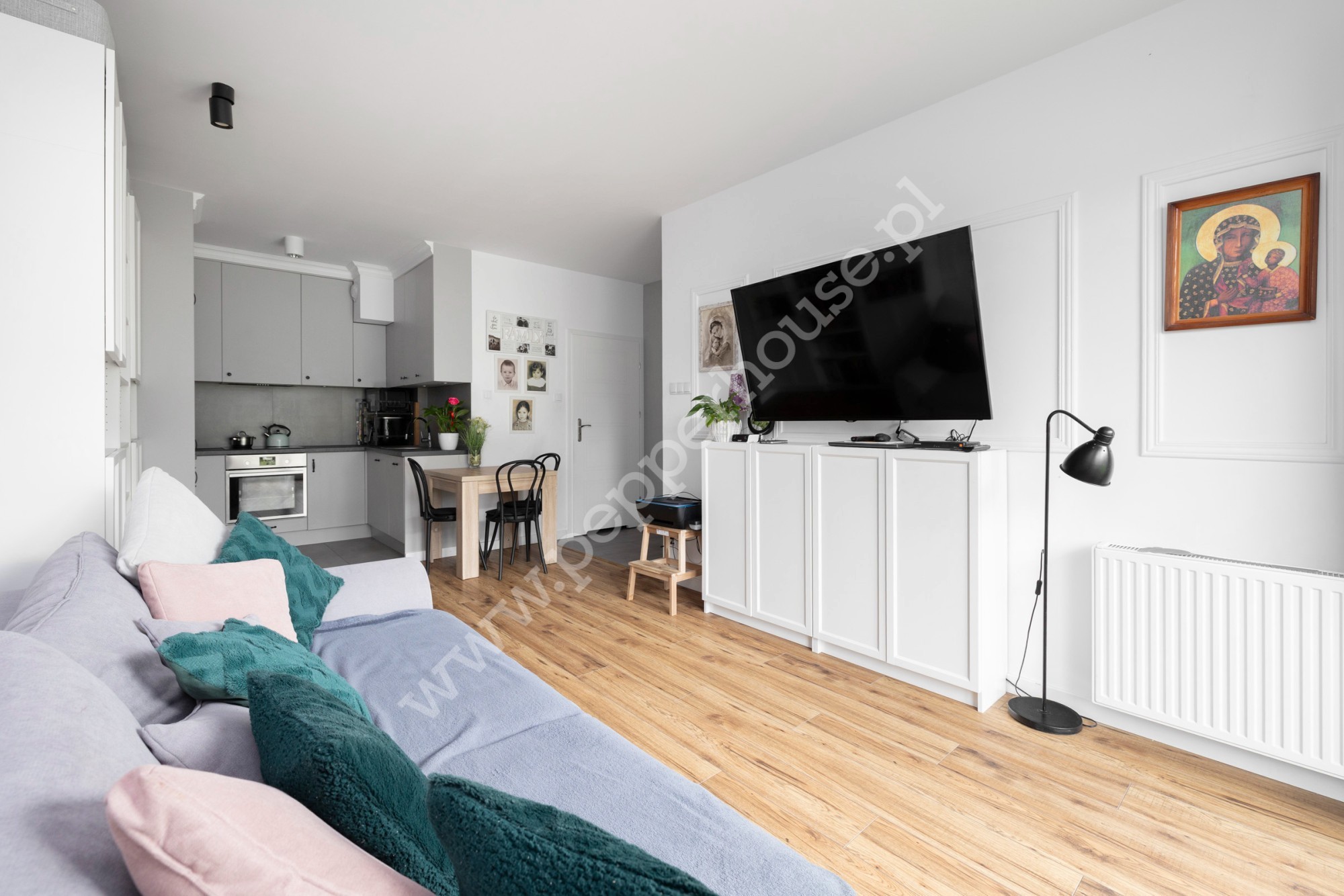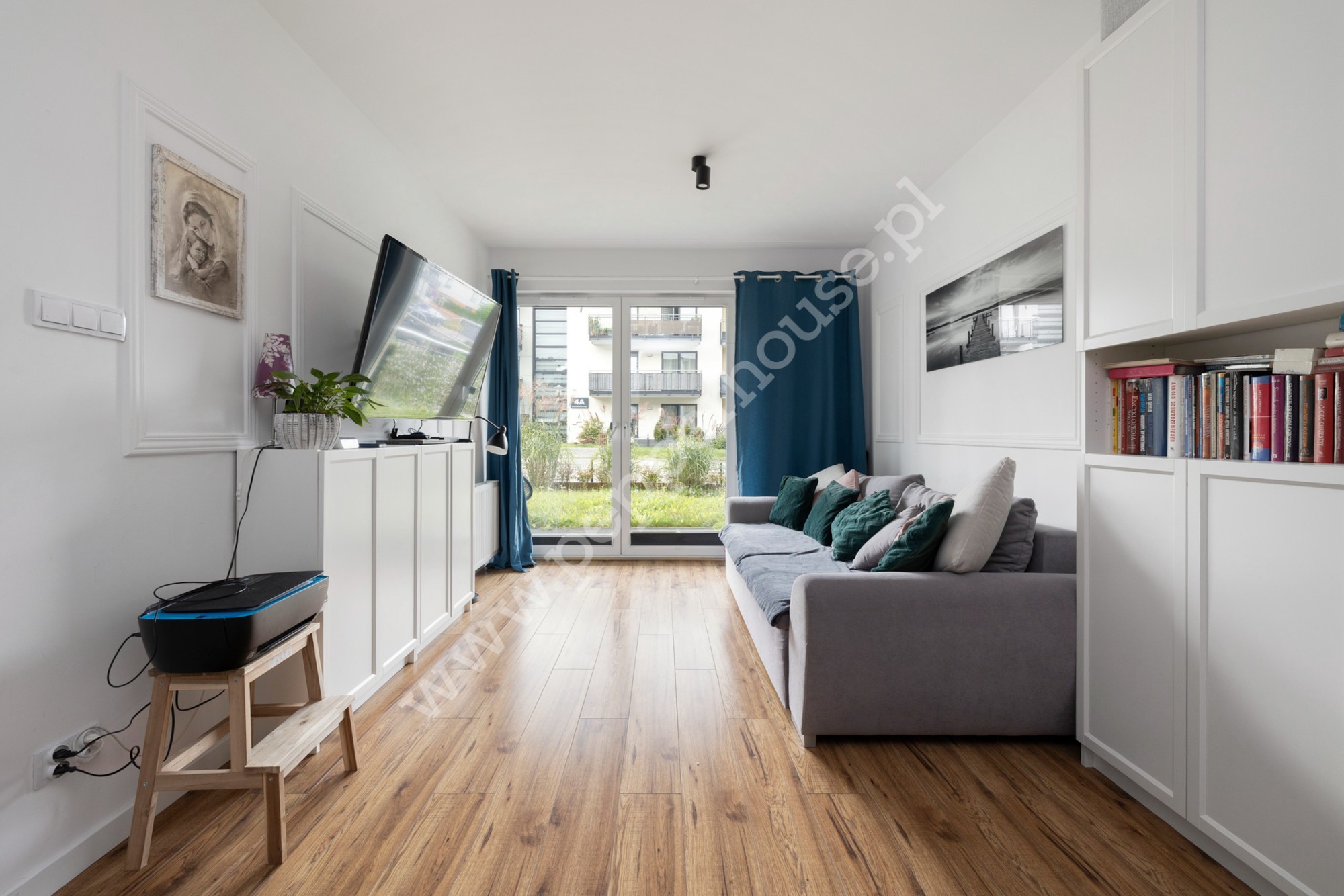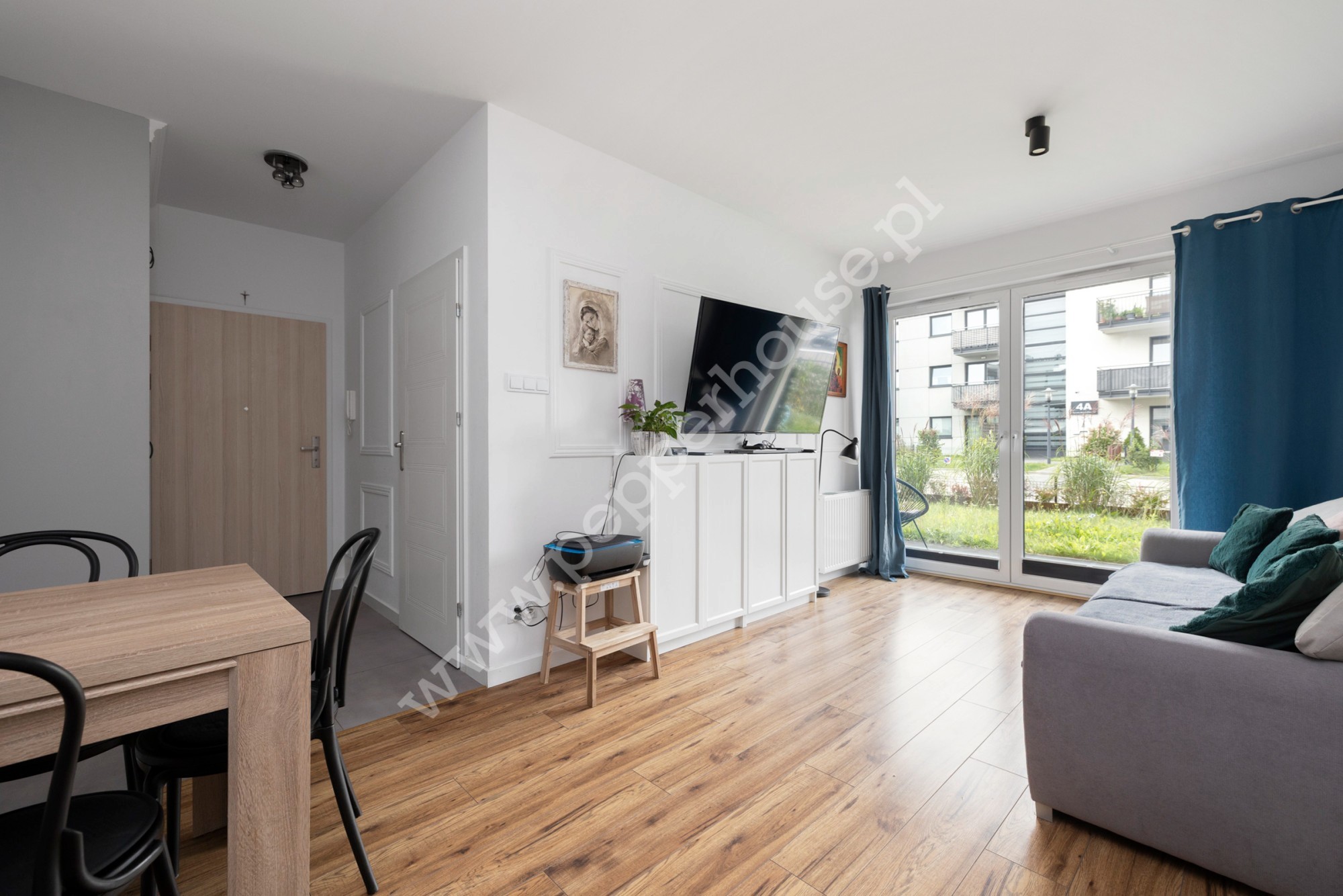 Słoneczne mieszkanie o łącznej powierzchni użytkowej 39,40 m2 znajduje się na parterze w niskim, dwupiętrowym budynku wzniesionym w 2020 roku na Osiedlu Olszewskiego.