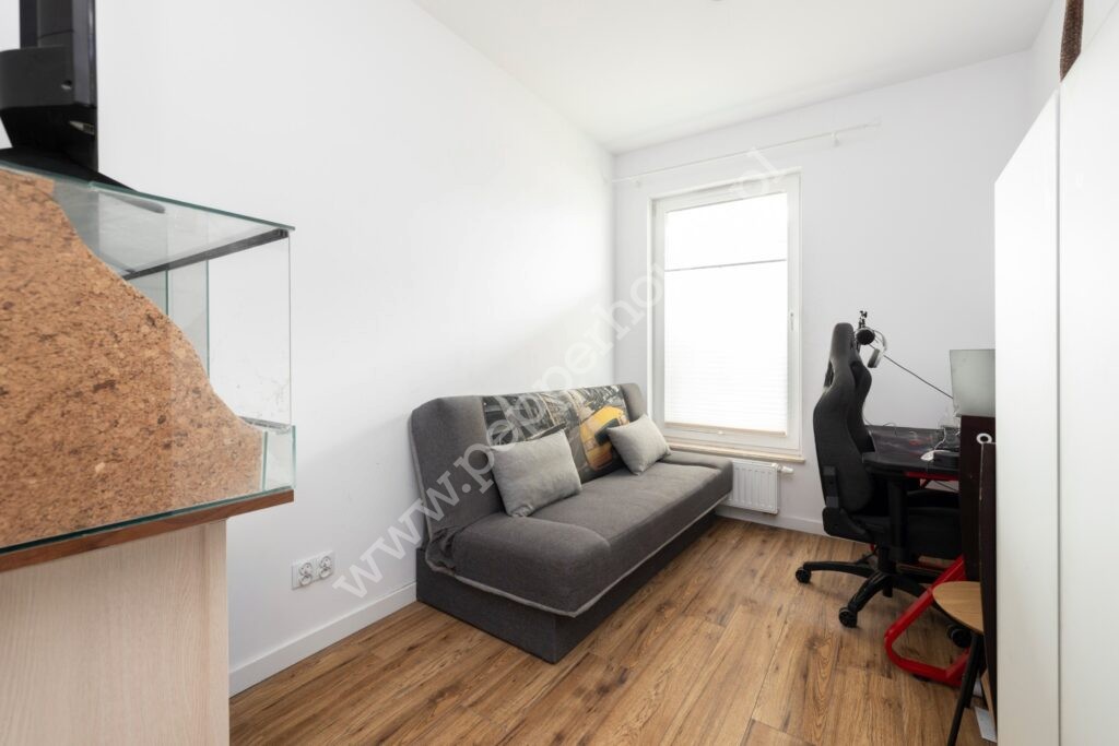 Mieszkanie sąsiaduje z miejskim parkiem oferującym boiska, place zabaw, siłownię na świeżym powietrzu, ścieżki rowerowe i spacerowe — doskonałe miejsce do relaksu i aktywnego wypoczynku dla całej rodziny.