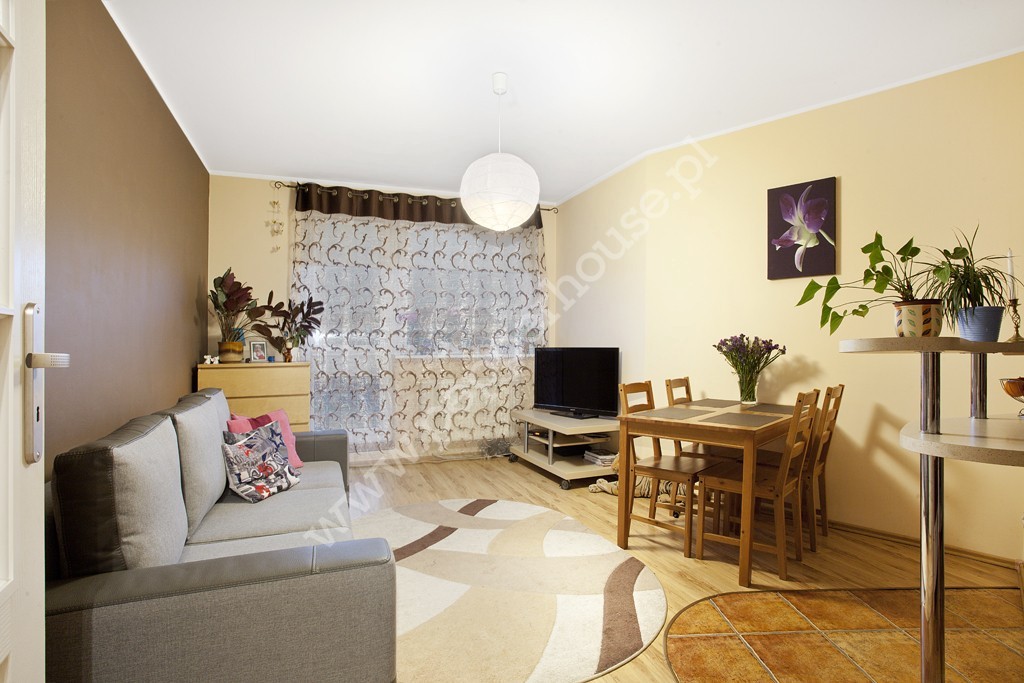 Lokal składa się z salonu z otwartą kuchnią, sypialni, przestronnej łazienki z WC, przedpokoju i pomieszczenia gospodarczego. Z salonu wyjście na duży balkon. Mieszkanie posiada ekspozycję południowo-wschodnią gwarantującą bardzo korzystne nasłonecznienie. Ogrzewanie gazowe za pomocą pieca znajdującego się we własnej kotłowni pod budynkiem.