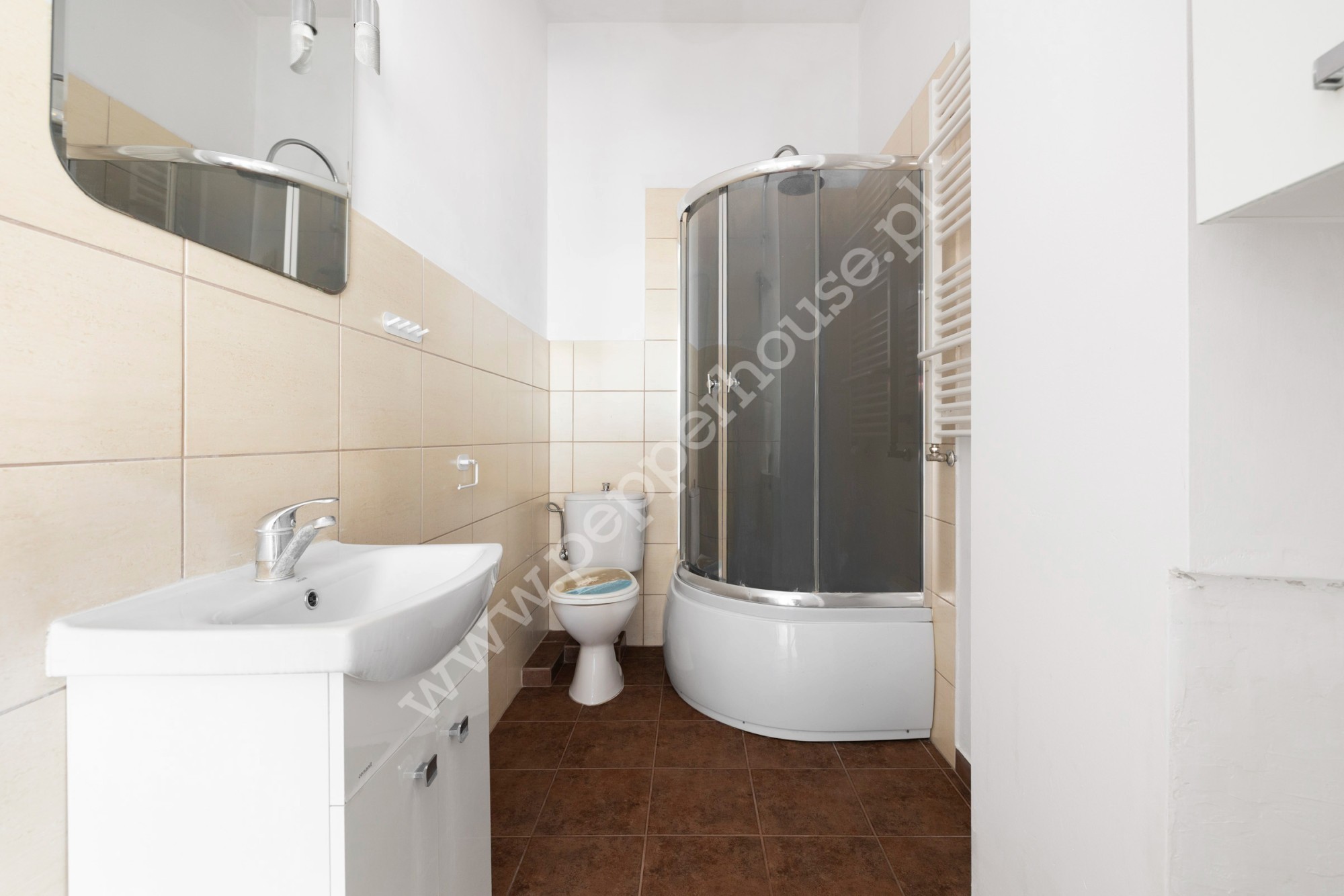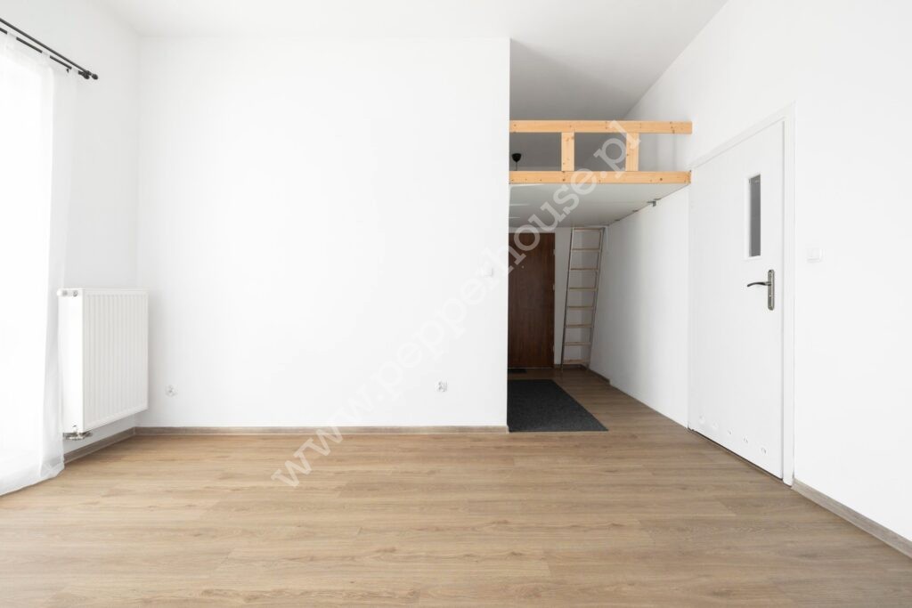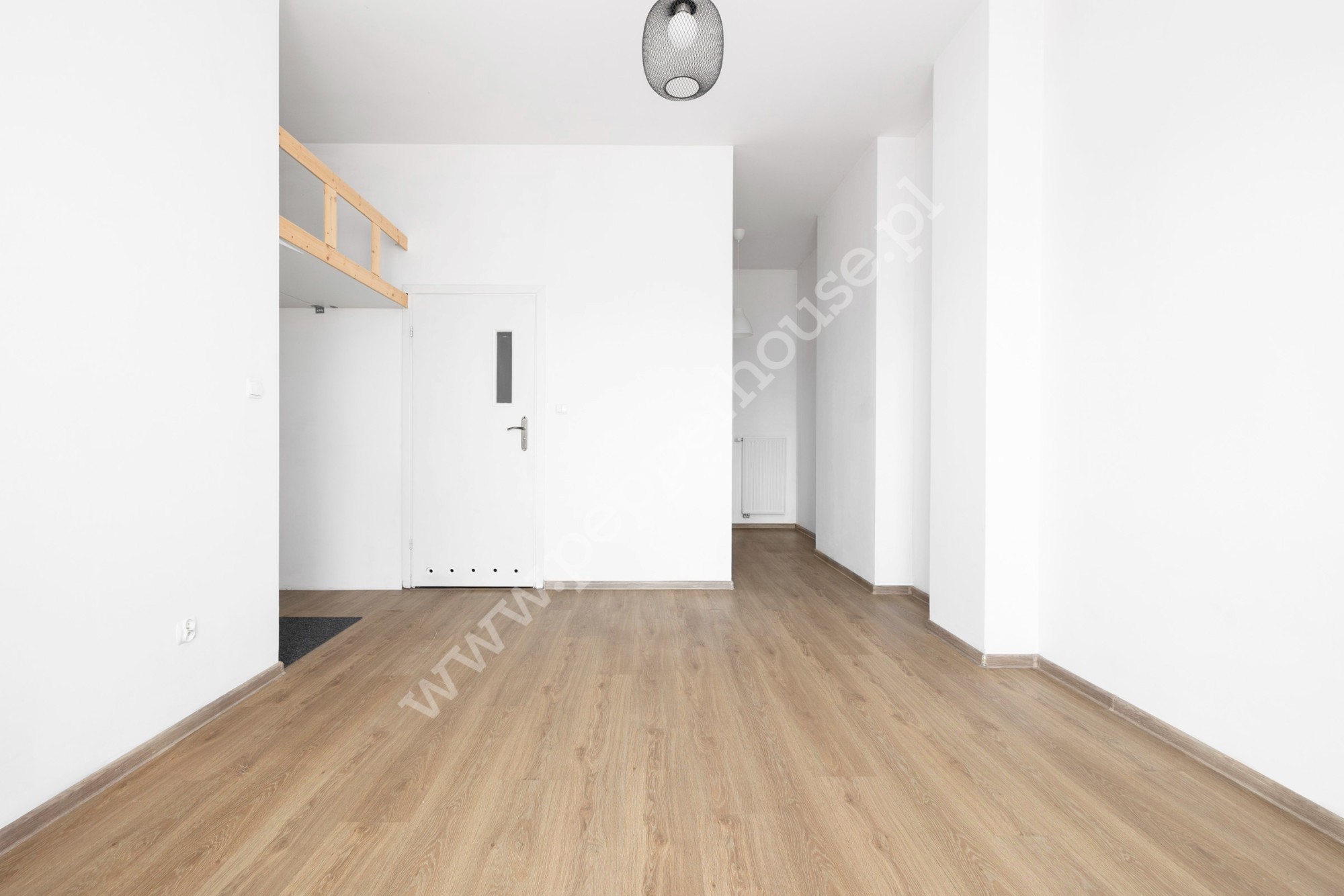 Układ pomieszczeń: Salon z aneksem kuchennym, łazienka z kabiną prysznicową oraz przedpokój z antresolą.