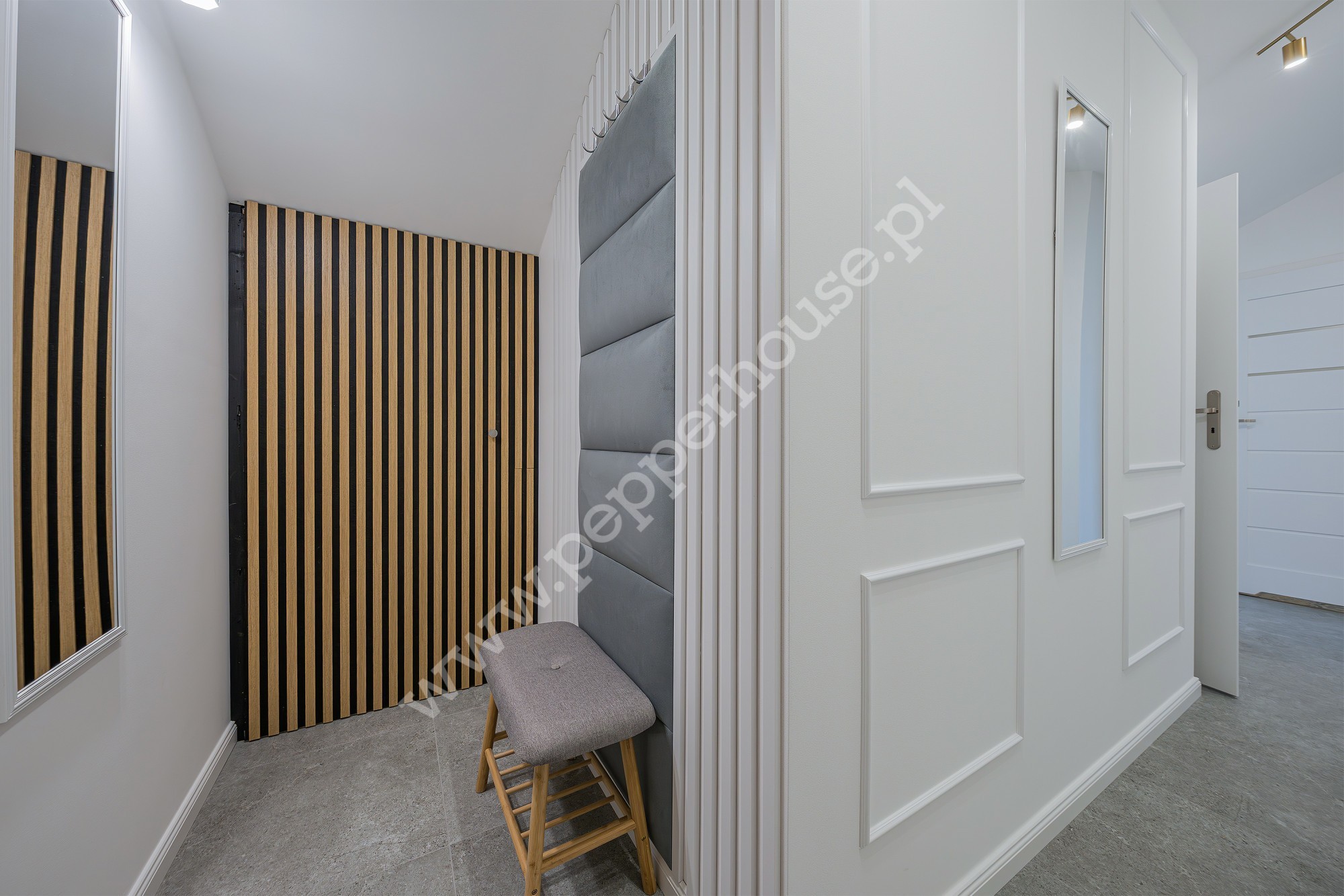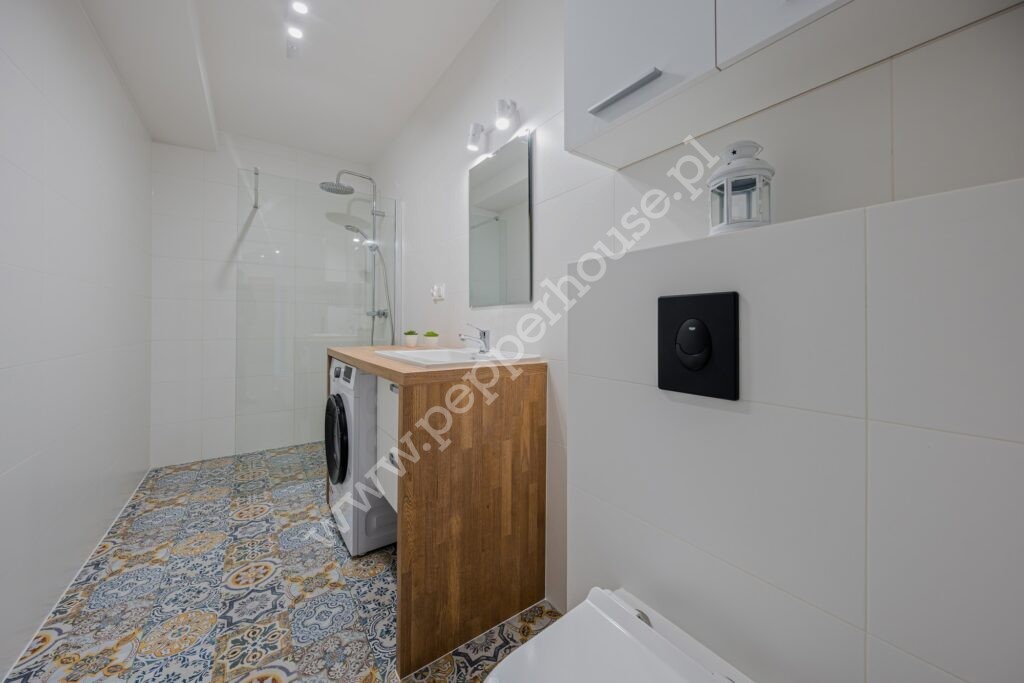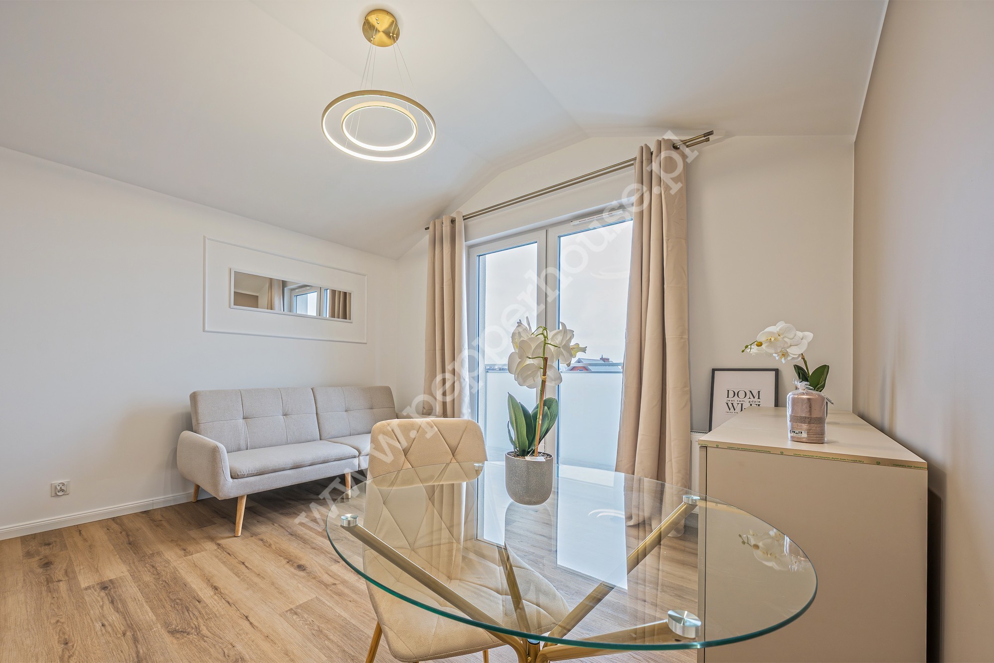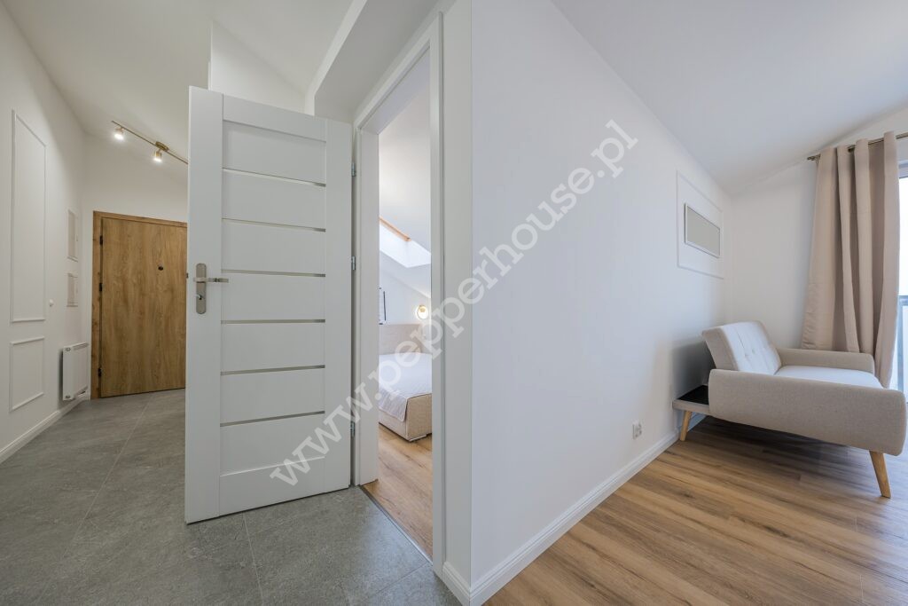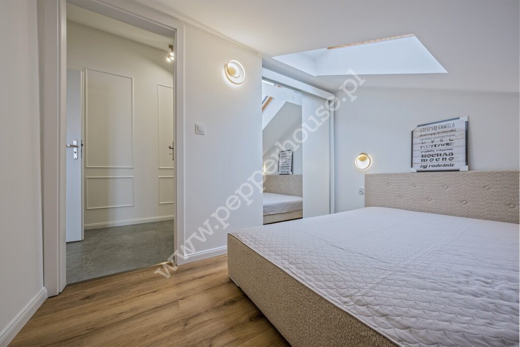 Wnętrze zostało urządzone w nowoczesnym stylu z dbałością o detale. Kuchnia wyposażona w nowe sprzęty: lodówkę, zmywarkę, płytę indukcyjną, piekarnik oraz pralkę – wszystko objęte gwarancją.