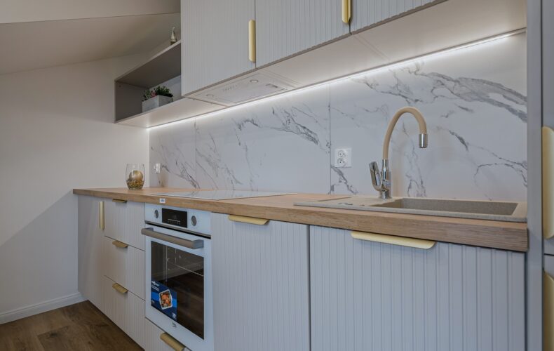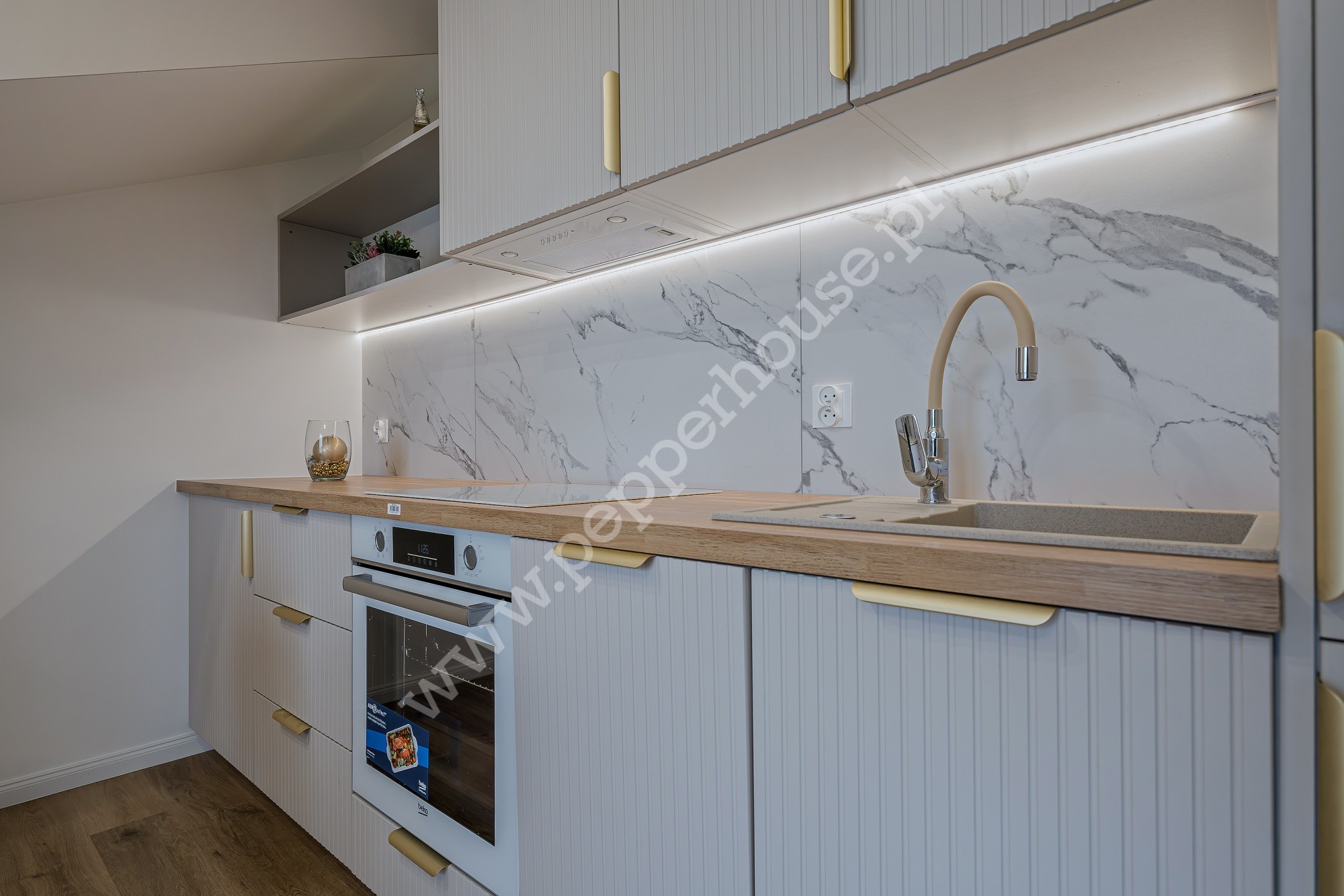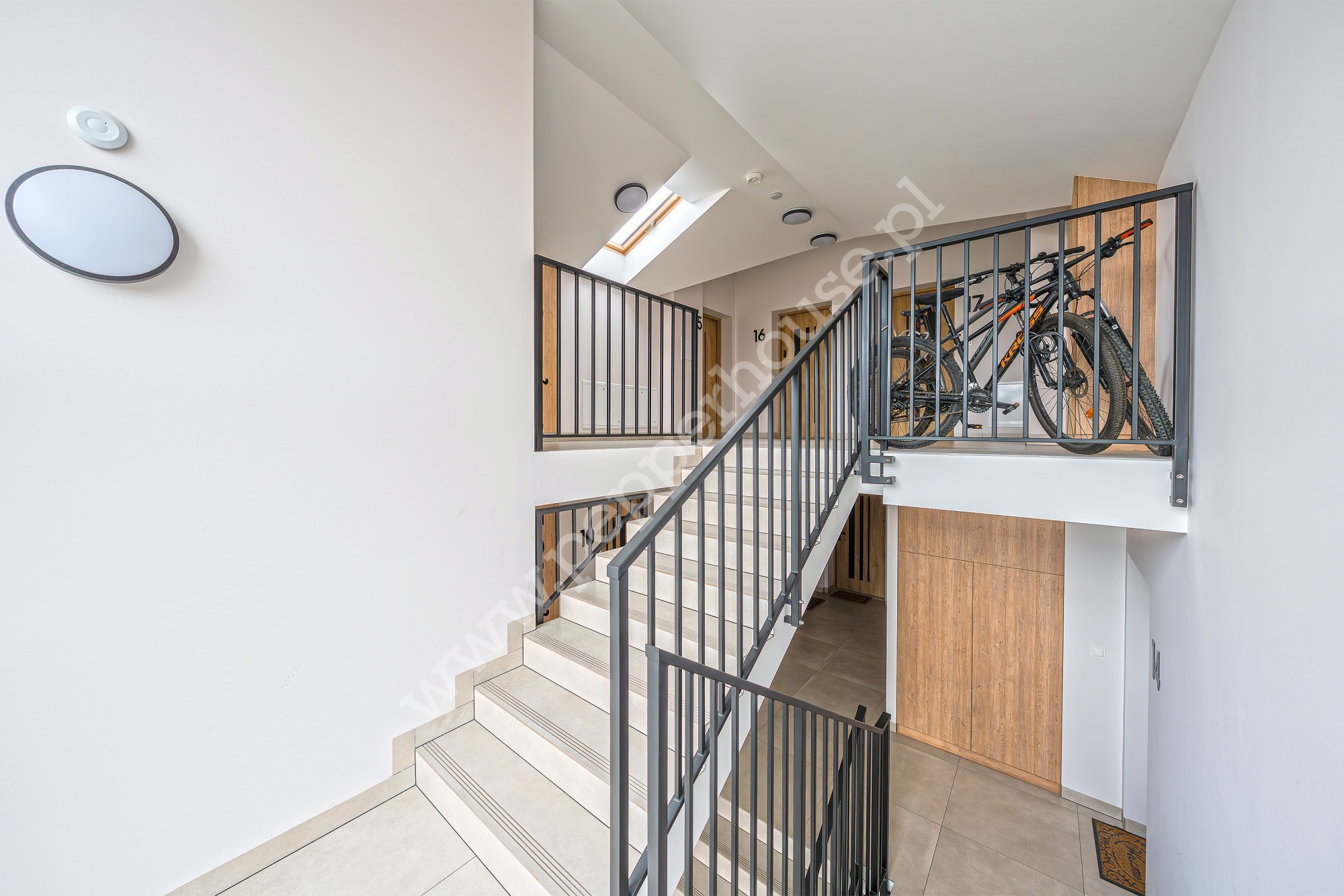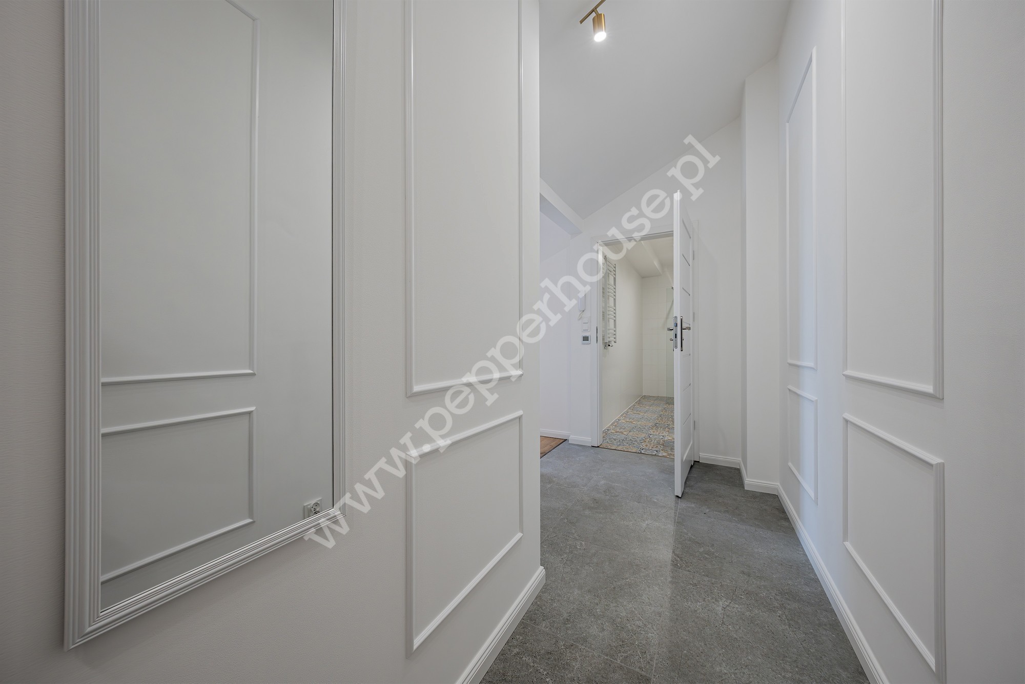 Wnętrze zostało urządzone w nowoczesnym stylu z dbałością o detale. Kuchnia wyposażona w nowe sprzęty: lodówkę, zmywarkę, płytę indukcyjną, piekarnik oraz pralkę – wszystko objęte gwarancją.