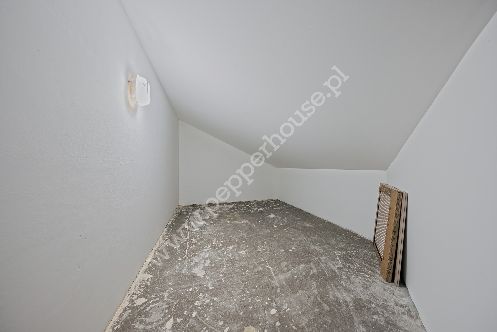 Lokal o powierzchni użytkowej 36 m² (ok. 38 m² po podłodze). Skosy występują w sypialni oraz pomieszczeniu gospodarczym.