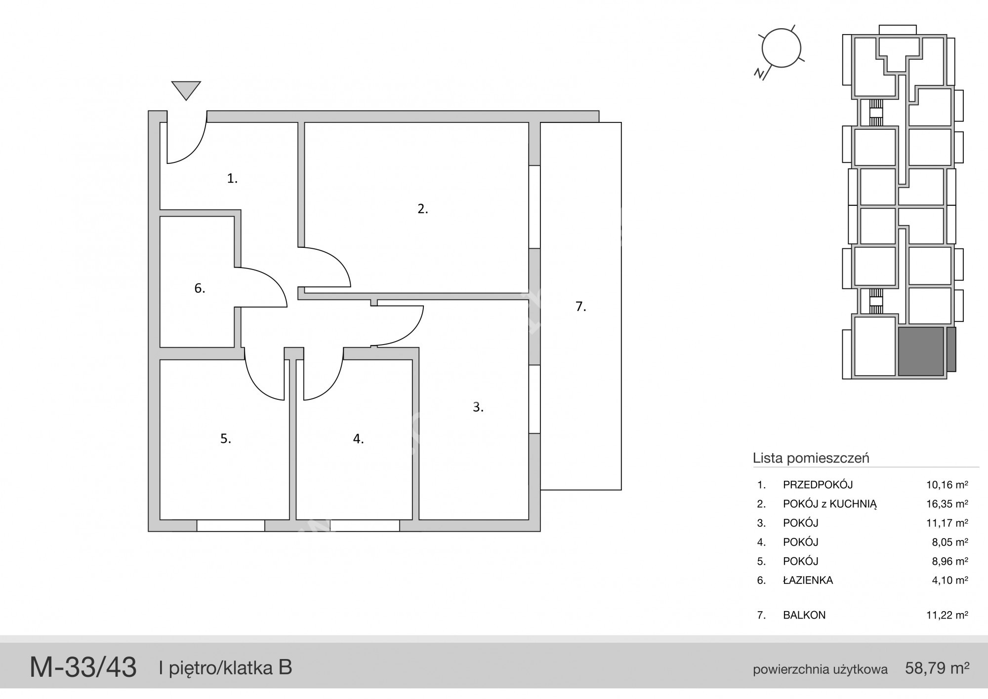 W skład mieszkania wchodzi: salon z aneksem kuchennym o powierzchni 16,35m2, trzy oddzielne sypialnie (11,17m2, 8,05m2, 8,96m2) istnienie mozliwość polączenia w przestronną cześć dzienna salon z aneksem kuchennym jednego z dwóch pokoi, dodatkowo w mieszkaniu będzie hall z wnęka na szafę pod zabudowę (10,16m2) oraz łazienki o powierzchni 4,10m2