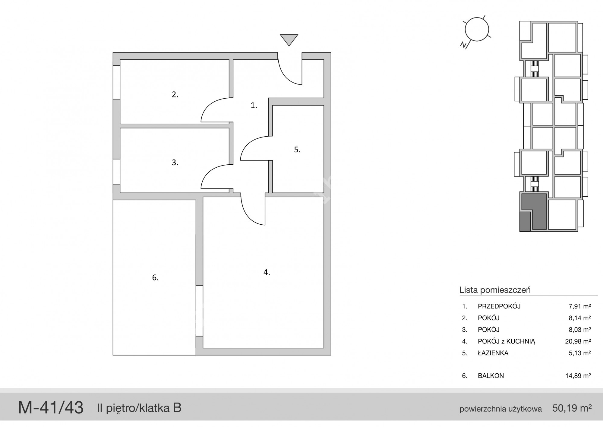 W skład mieszkania wchodzi: salon z aneksem kuchennym o powierzchni 20,98m2 oddzielne dwie sypialnie (8,03m2 , 8,14m2) hallu z wnęka na szafę pod zabudowę (7,91m2) oraz łazienki o powierzchni aż 5,13m2