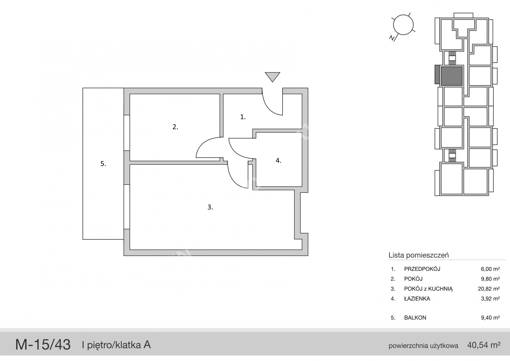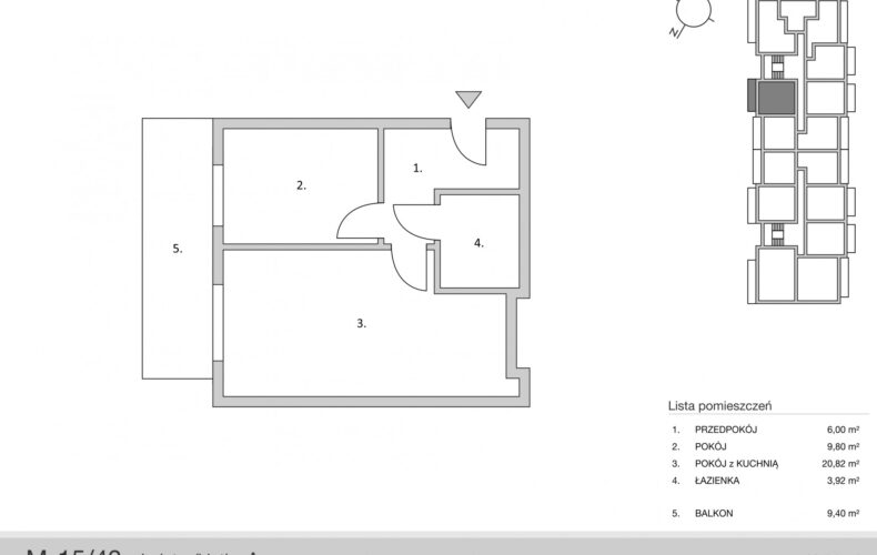 W skład mieszkania wchodzi: salon z aneksem kuchennym o powierzchni 20,82m2 oddzielna sypialnia 9,80m2 hallu z wnęka na szafę pod zabudowę (6m2) oraz łazienki o powierzchni 3,92m2