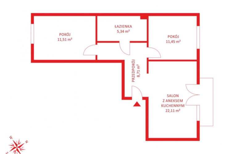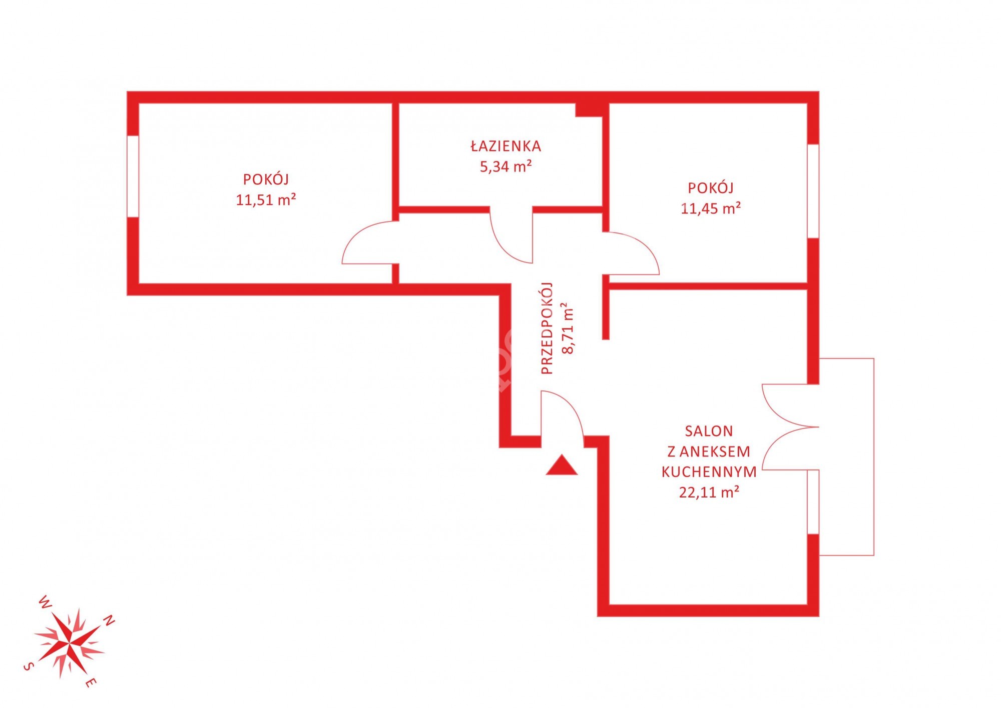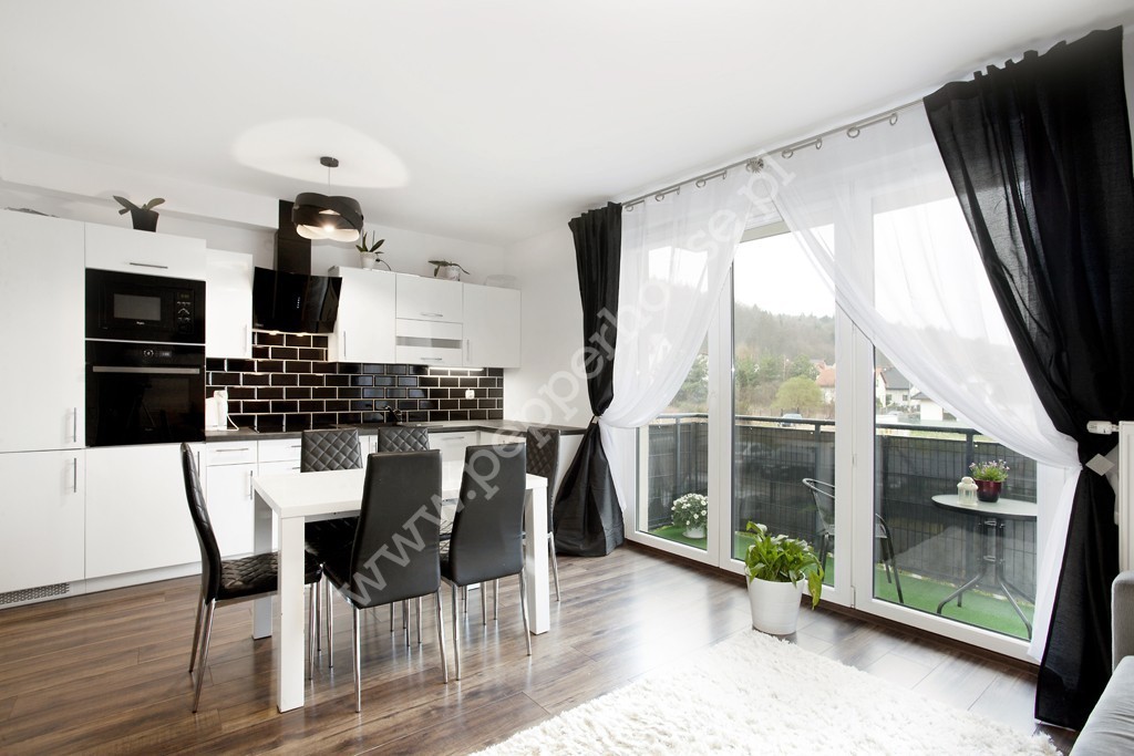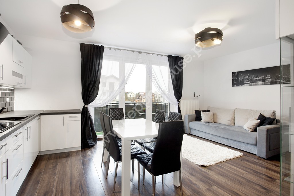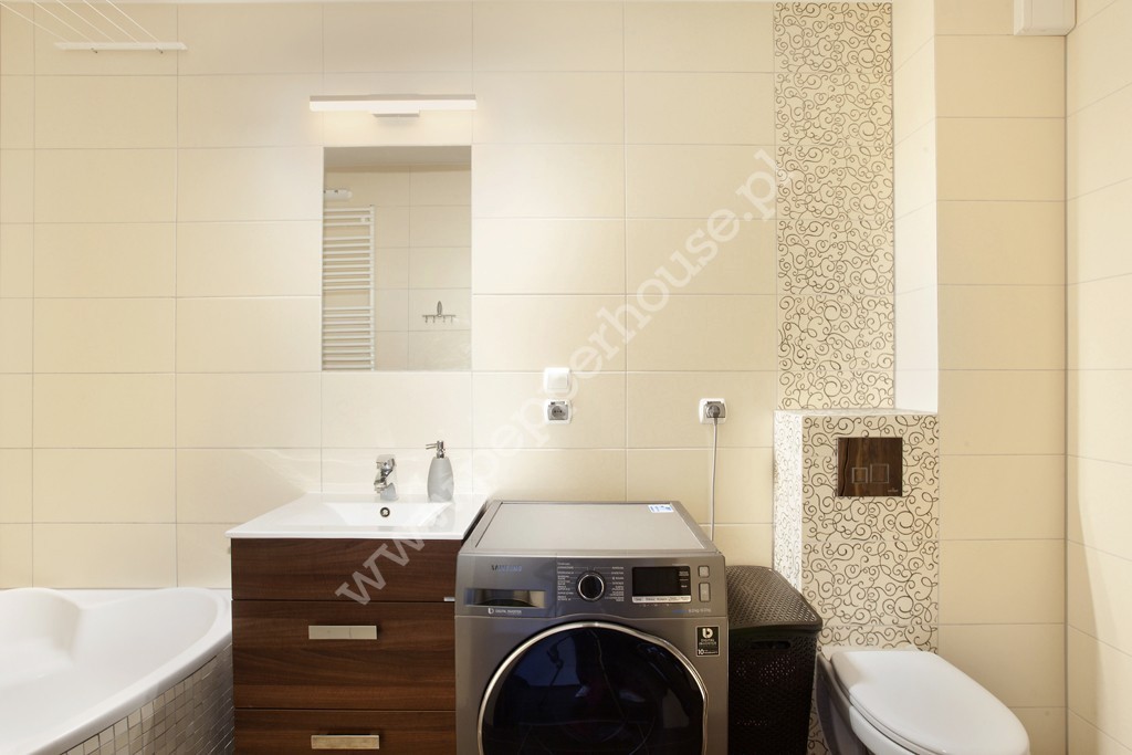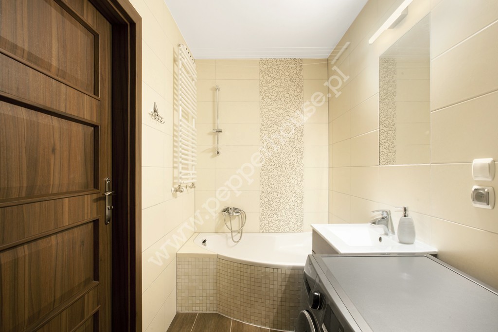 Mieszkanie składa się z przestronnego salonu z aneksem kuchennym, sypialni, pokoju i gustownej łazienki z dużą narożną wanną.