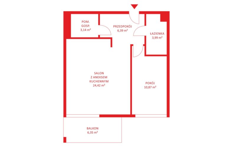 Mieszkanie o powierzchni 48,81 m2 składa się z: