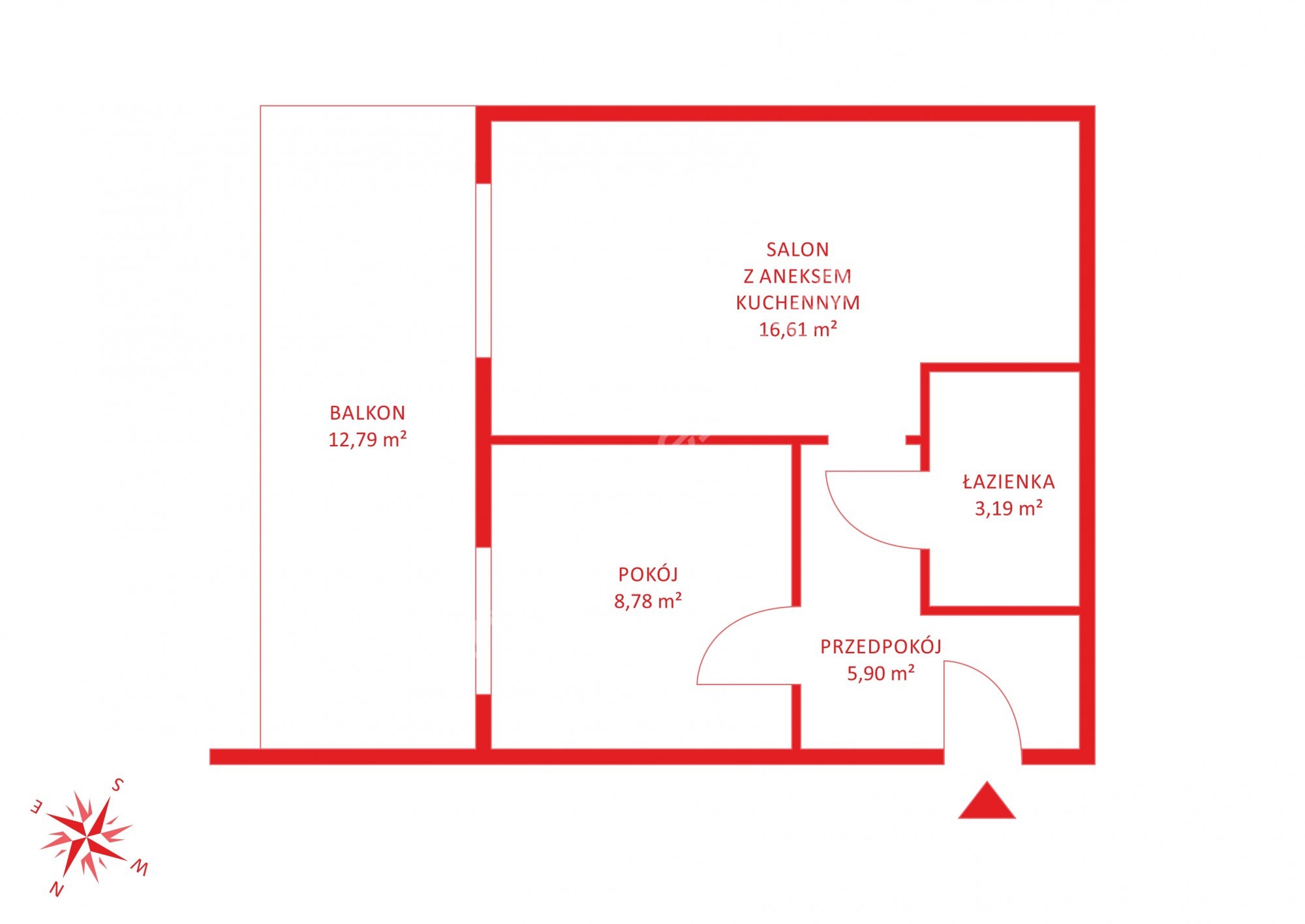 W skład mieszkania wchodzi: salon z aneksem kuchennym o powierzchni 16,61m2 oddzielna sypialnia 8,78m2 holu z wnęka na szafę pod zabudowę 5,90 m2 oraz łazienki o powierzchni 3,19 m2 Mieszkanie posiada duży balkon aż 12,79m2.
