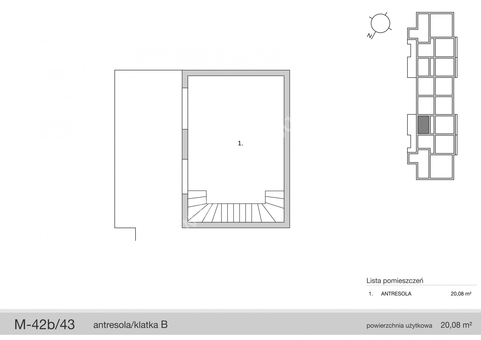 Otwarta przestrzeń (antresola) – 20,08 m2 do dowolnej aranżacji dla klienta – proponowane są dwie sypialnie + łazienka.