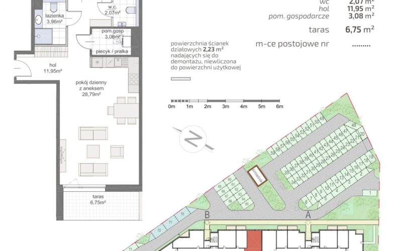 oraz tarasu o powierzchni 6,75m2 + wydzielonej części własnego ogródka.