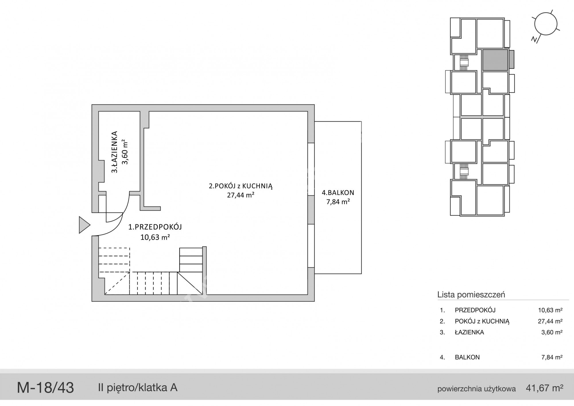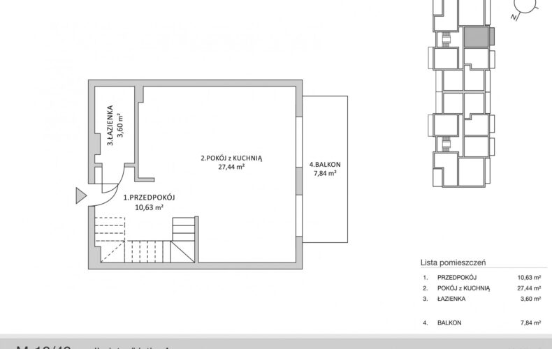 Salon z aneksem kuchennym o powierzchni aż 27,44m2 hall z wnęka na szafę pod zabudowę (10,63m2) oraz łazienka o powierzchni 3,60m2.