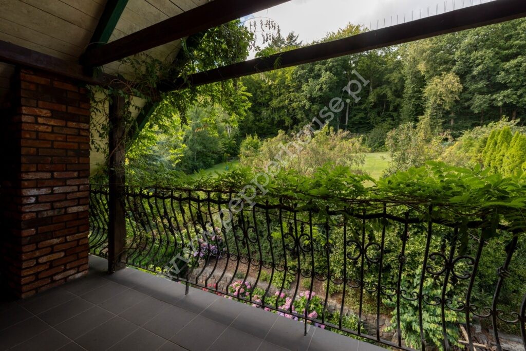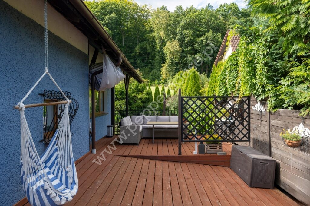 . wyjście na taras otulony zielenią