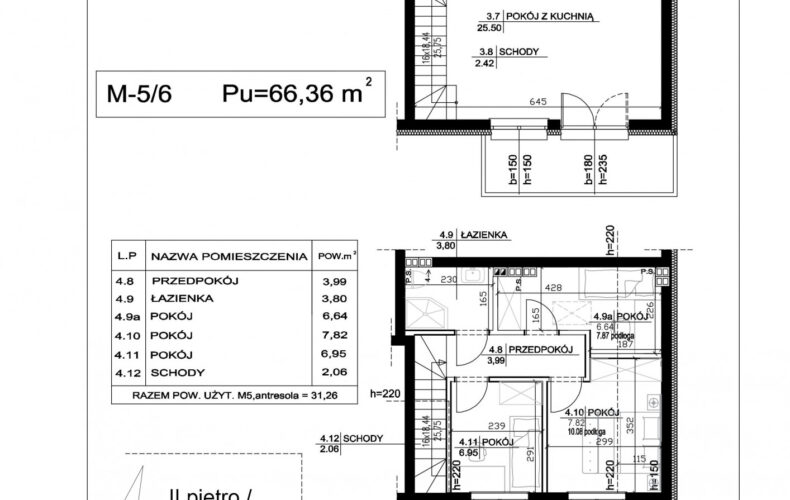 II poziom: 31,26 m2 (możliwość aranżacji 3 lub 4 pokoi + łazienki)