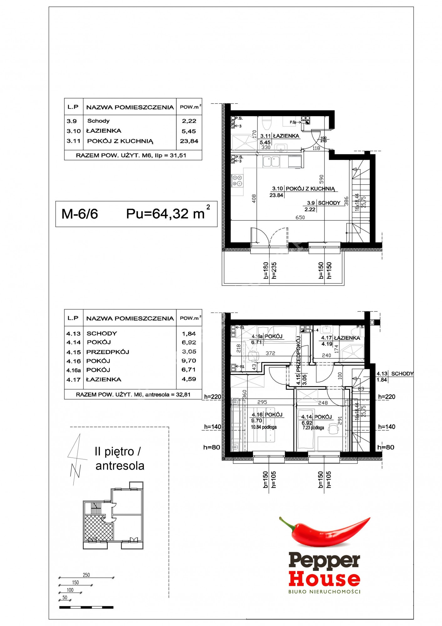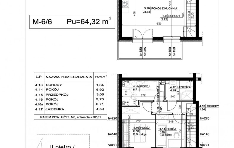 II poziom: 32,81 m2 (możliwość aranżacji 3 lub 4 pokoi + łazienka wg uznani klienta)