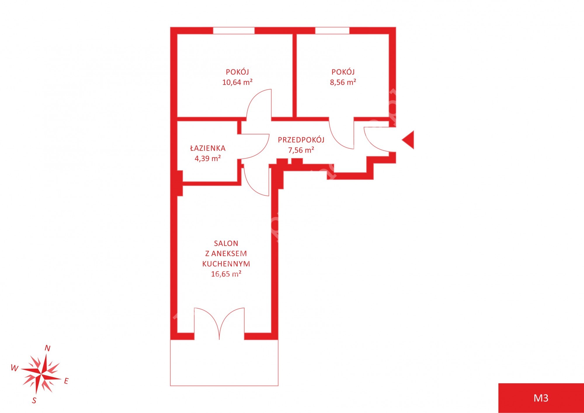* salon z aneksem kuchennym (16,65 m2) z bezpośrednim wyjściem na balkon od strony południowej