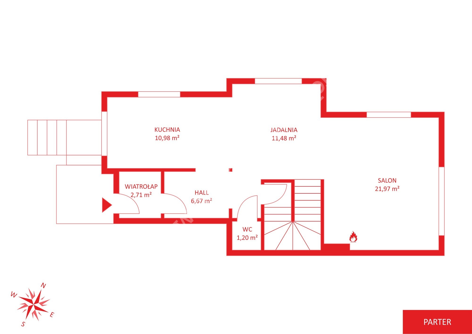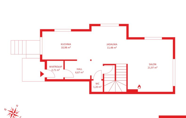 – w salonie kominek z kamienia z rozprowadzeniem ciepła w salonie (system na drewno, bez płaszcza wodnego).